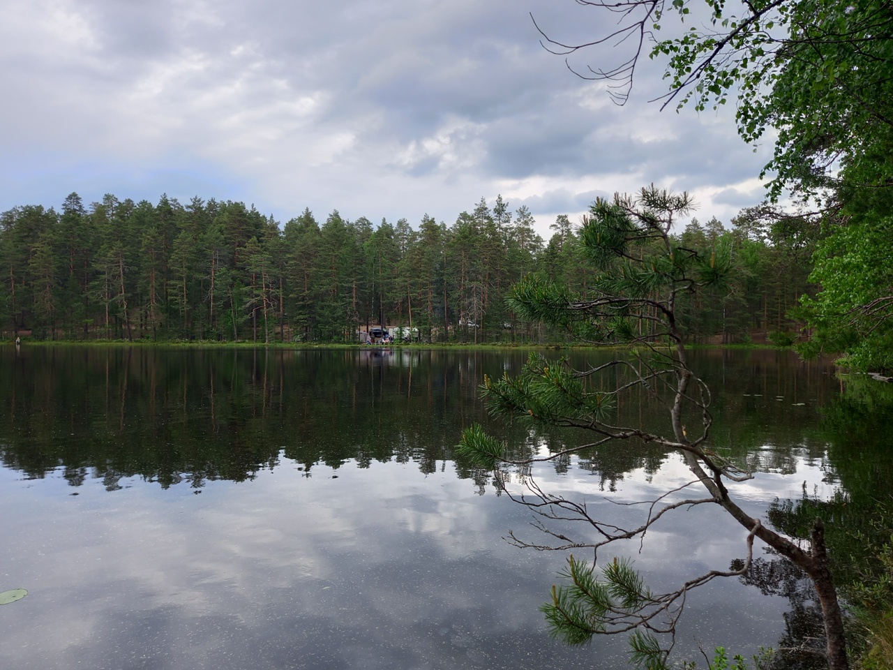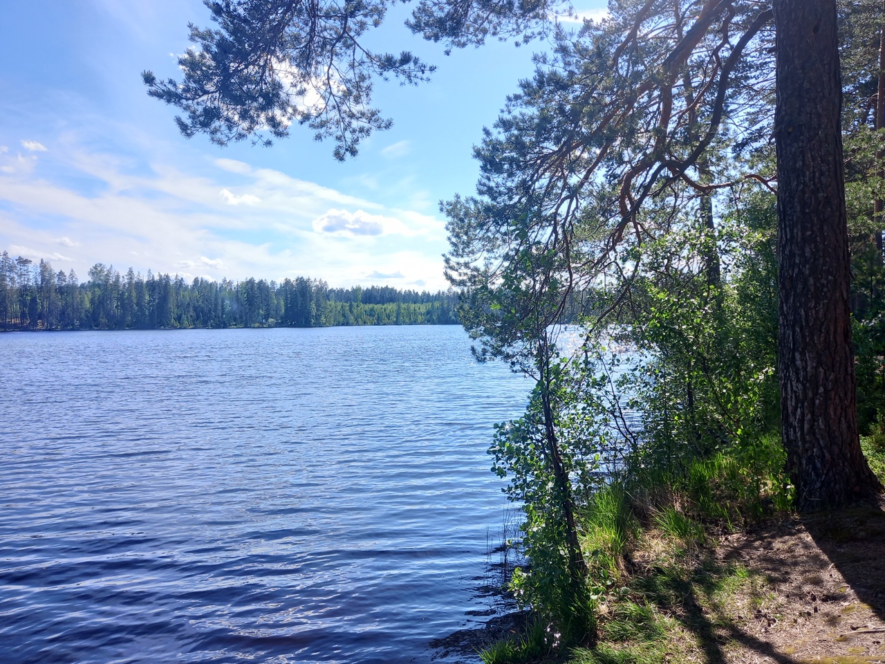 Озеро Валкеалампи — второе на нашем маршруте. Оно же имеет и другое название — Олисялампи. Здесь тоже много отдыхающих, которые паркуют машины недалеко от воды. В итоге вместо пейзажей видишь парковку. Кругом шум.