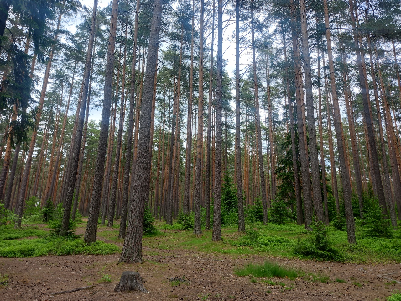 Вот такой прекрасный лес рядом с пляжем. Сосны и заросли черники.