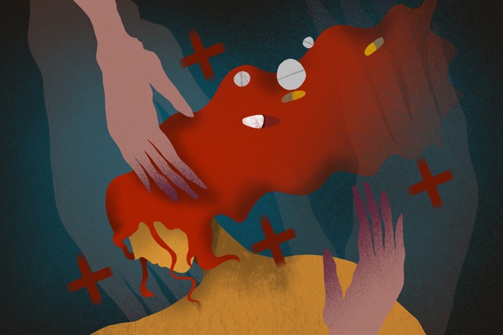 «[Подсудимый] повалил [потерпевшую] на коробки с лекарствами, стоящие на полу, лег сверху, и стал грубо хватать руками за различные части тела, после чего стал душить ее, сдавливая шею, — сказано в приговоре. — Высказывая угрозы убийством, стал избивать, нанеся ей не менее пятнадцати ударов ладонями по лицу, в том числе бил по голове, после чего попытался ввести свой половой член ей во влагалище, однако, не смог это сделать».