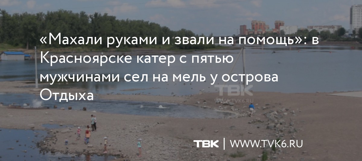 Все произошло вечером 14 июля ниже о. Отдыха. Об этом сообщили в краевой службе спасения. Там отметили, что мужчины махали руками и просили помочь в эвакуации. На место прибыл красноярский поисково-спасательный отряд. Красноярцев эвакуировали, катер сняли с мели и отбуксировали его до берега.
