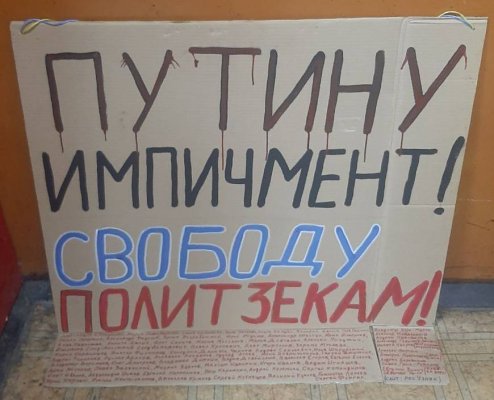Капустин вышел с плакатом «Путину импичмент! Свободу политзекам!» к памятнику Ленина на площади Революции.