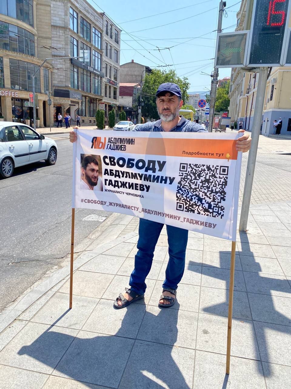 Каждый понедельник в Махачкале проходит серия одиночных пикетов с требованием прекратить уголовное преследование журналиста Абдулмумина Гаджиева и других политических заключенных. Акция длится уже более трех лет.