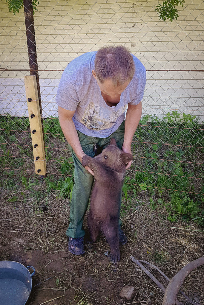 «К нам привозят очень много медвежат. Они все избалованные. Но когда помещаешь их в дикие условия, в своем социуме они находятся. Запахи другие, земля под ногами, ночь вместе, холод, тепло, они быстренько перестраиваются. Если им до пяти месяцев [прим.: Баграту по приезду в «Утес» было около шести месяцев], их можно еще вернуть [в тайгу]. Мы с зоосада брали как-то двух медвежат. Казалось бы, там столько народу. Единственное, им было по три месяца. Они стали такие же дикие», — говорит Круглов.