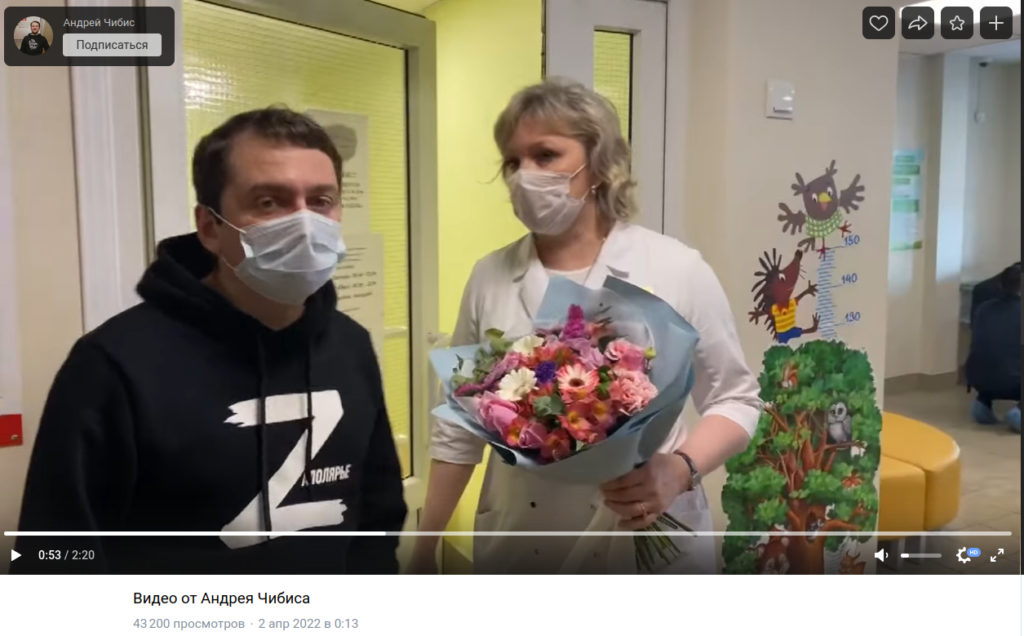 А вот скриншот с видео от 2 апреля, когда весь мир потрясли ужасающие кадры из Бучи. Губернатор Чибис как ни в чем не бывало позировал в толстовке с Z-свастикой.