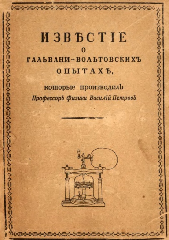 В конце XIX века студент Петербургского университета А. Гершун, изучая литературу по физике в публичной библиотеке города Вильно, наткнулся на книгу Петрова «Известие о гальвани-вольтовских опытах…».