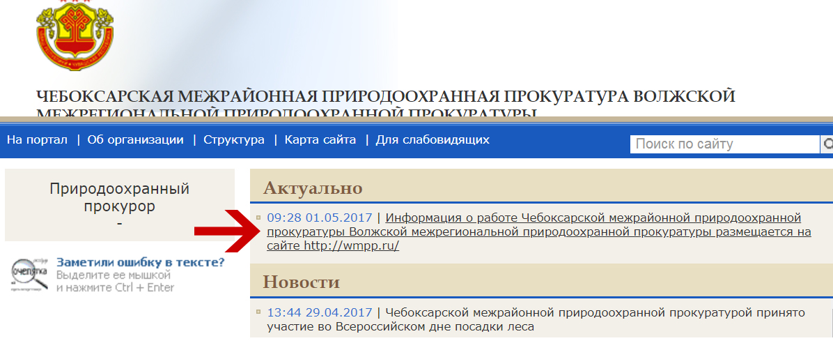 Давно не интересовался работой Чебоксарской межрайонной природоохранной прокуратуры Волжской межрегиональной природоохранной прокуратуры (пипец как звучит и читается, но так на сайте). Ранее сайт, до 1 мая 2017 года, располагался по этому адресу на портале государственных структур.