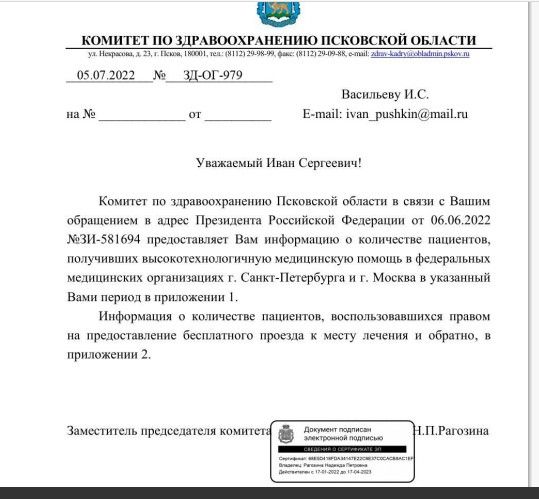 Туберкулез сам по себе - это серьезная болезнь. Ниже представлены сканы документов комитета по здравоохранению Псковской области, из которых следует, что с 2017 года только два пациента из нашего региона воспользовались предусмотренным законом правом на БЕСПЛАТНЫЙ (для них) проезд к месту лечения.