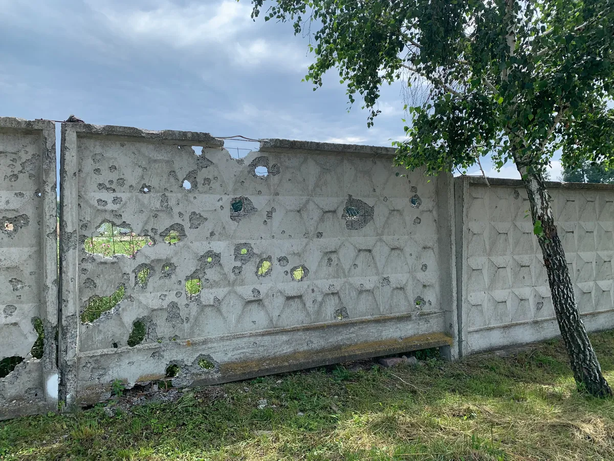 С Маргаритой Тереховой, чья должность называется староста села (в стране прошла административная реформа) едем на ее малолитражке смотреть очередное поле: футбольное, с искусственным покрытием. Там мальчишки азартно набивают мяч, кричат. Лучшие звуки после ада, который творился весь март. Поле уцелело, пробоина зияет только в вывеске у входа на площадку. У Маргариты Стахивны еще есть план разбить в селе скейт-парк. И если кто-то заикнется, что во время войны желания должны выглядеть скромнее, она ответит! Может, еще и праздник не надо было устраивать на день Конституции Украины, в конце июня, когда люди пели, хлопали и плакали одновременно?