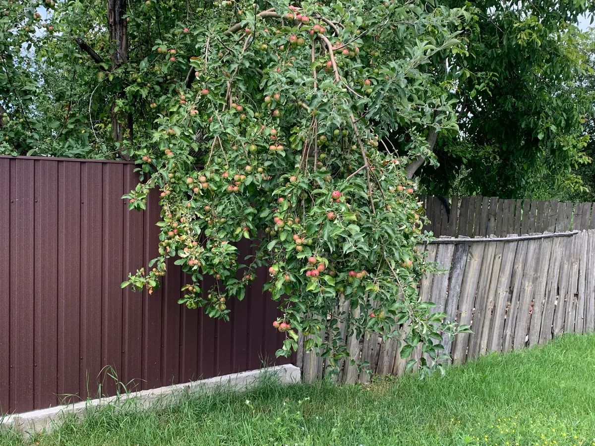 Марина показывает на стропила, что чуть виднеются сквозь гущу сада: