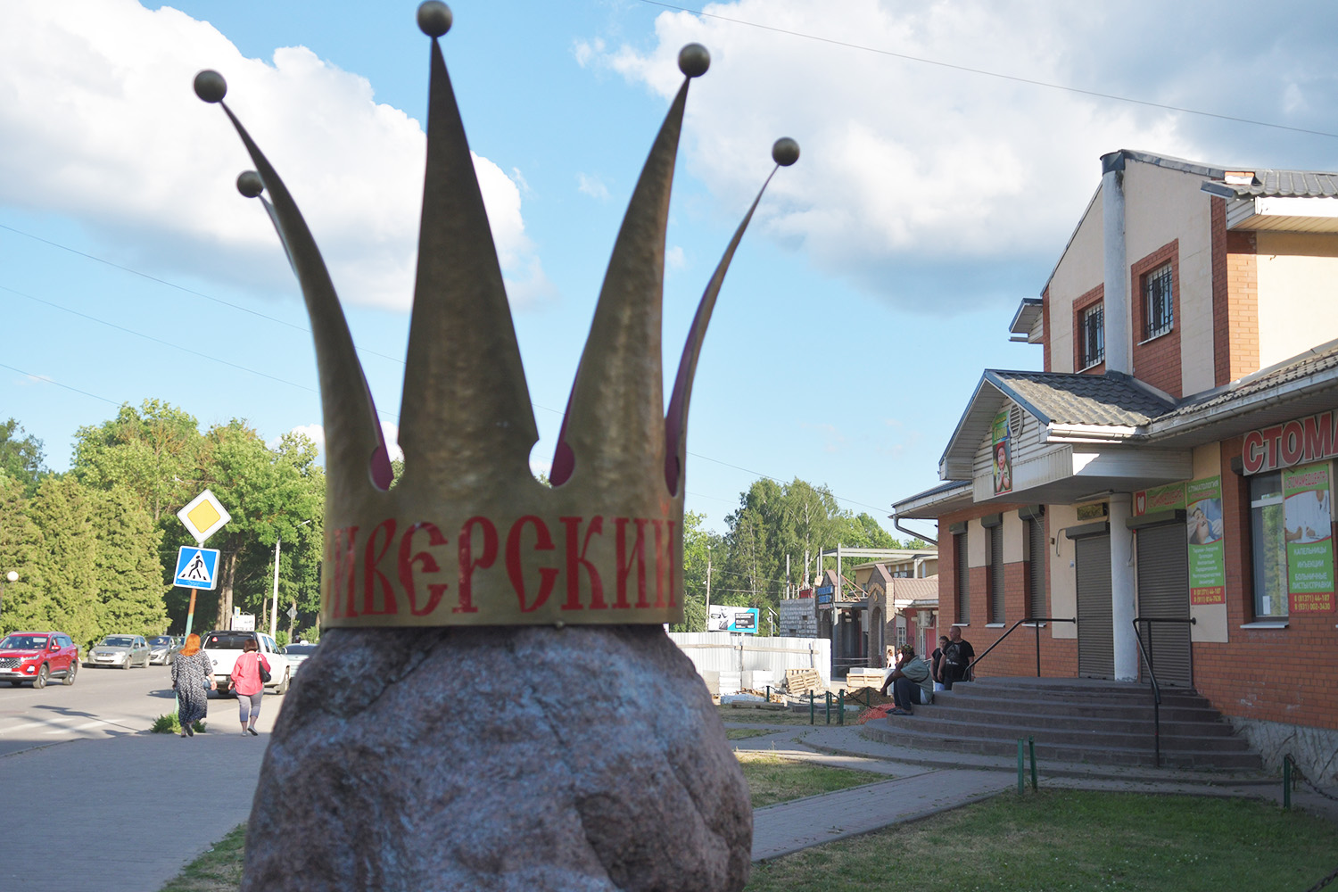 На пятачке перед голландским домом Александр устроил сквер со скамейками и скульптурами авторства местных жителей. Это голландская мельница, статуя с аистами, валун в виде головы с курительной трубкой, в шляпе-цилиндре. На ней — фигурка человечка с безумными глазами и с бутылкой водки. На пузе у человечка — гравировка: «Крым наш». А на самом цилиндре — железная табличка с замазанной надписью «Нет войне». Александр поясняет: ее установили еще в 2014 году, когда партия «Яблоко» высказалась против войны в Украине. Недавно на табличке нарисовали букву Z, которую Правдин стер.