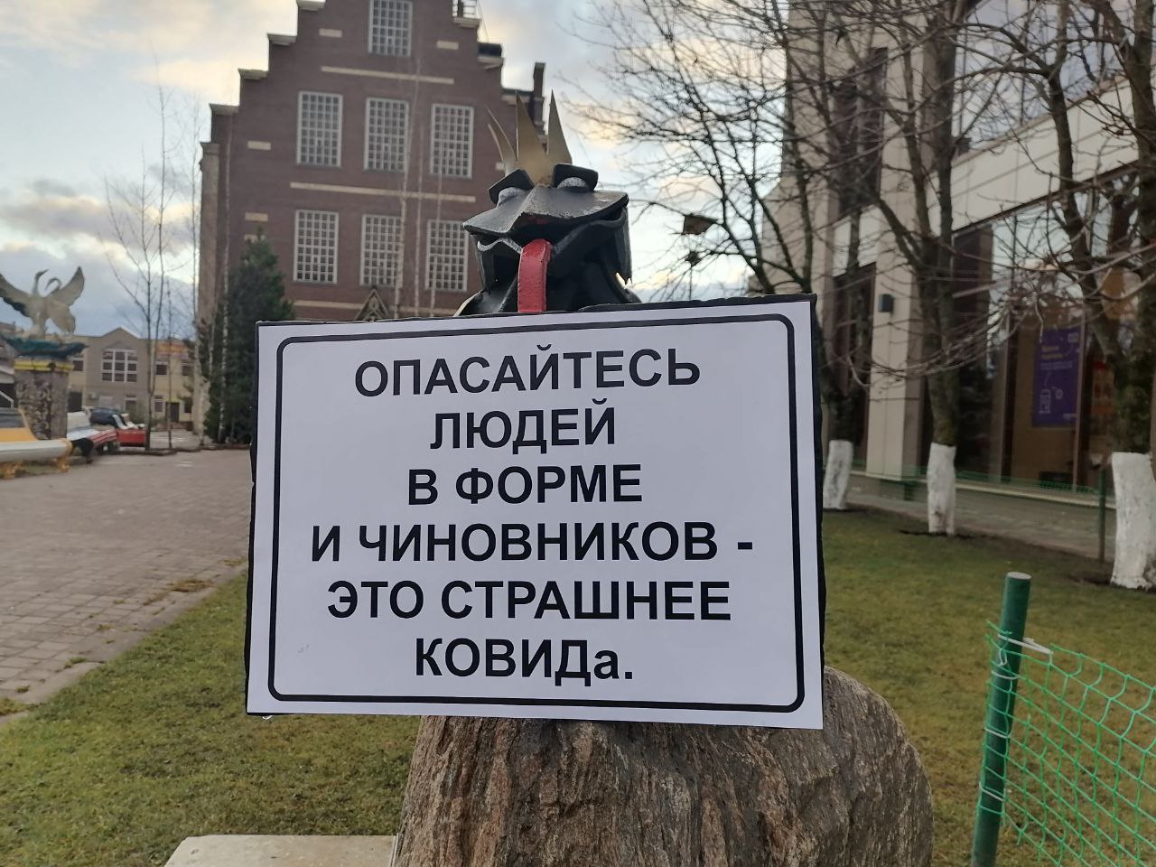 «Началось всё с „обнуления“. Я стал на вороне писать», — вспоминает Правдин историю первого высказывания в Сиверском сквере. Во время подготовки к референдуму по поправкам в Конституцию он нашел кузнецов, заказал им макет Конституции формата А4 и вставил в клюв вороне.