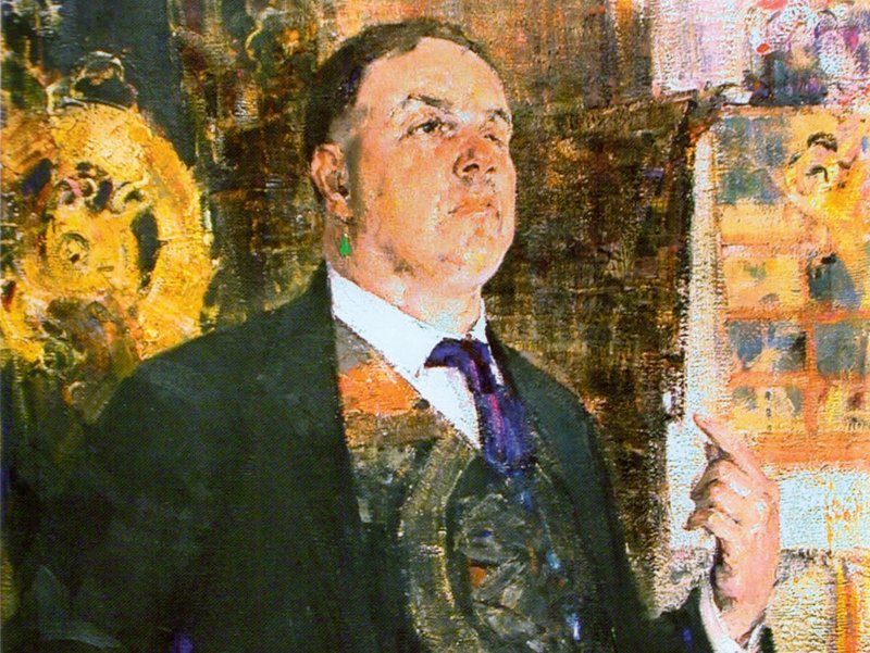 «Однажды вечером, когда я уже собирался лечь в постель, ко мне в дверь неожиданно постучалась Александра Экстер. Она была не одна. Вслед за нею в комнату ввалился высокого роста плотный мужчина в широком, по тогдашней моде, драповом, с длинным ворсом, пальто. На вид вошедшему было лет тридцать, но чрезмерная мешковатость фигуры и какая-то, казалось, нарочитая неуклюжесть движений сбивали всякое представление о возрасте. Протянув мне непропорционально малую руку со слишком короткими пальцами, он назвал себя: — Давид Бурлюк. Приведя его ко мне, Экстер выполняла не только мое давнишнее желание, но и свое: сблизить меня с группой ее соратников, занимавших вместе с нею крайний левый фланг в уже трехлетней борьбе против академического канона».