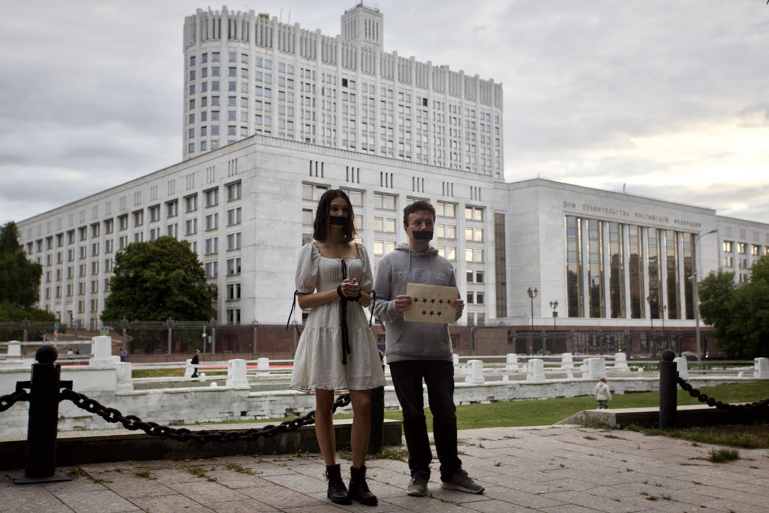 Волох и Смирнов сфотографировались с плакатами "*** *****" недалеко от Госдумы, Белого дома, у здания ФСБ на Лубянке и на Большом Москворецком мосту, где в 2015 году был убит оппозиционер Борис Немцов. Молодые люди заклеили себе рот чёрным скотчем, а у Волох были связаны руки в знак протеста против цензуры. Фото и видео перформанса публикует телеграм-канал "Осторожно, новости!".