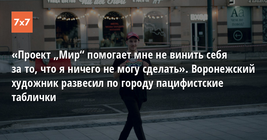 «Проект „Мир“ помогает мне не винить себя за то, что я ничего не могу сделать». Воронежский художник развесил по городу пацифистские таблички