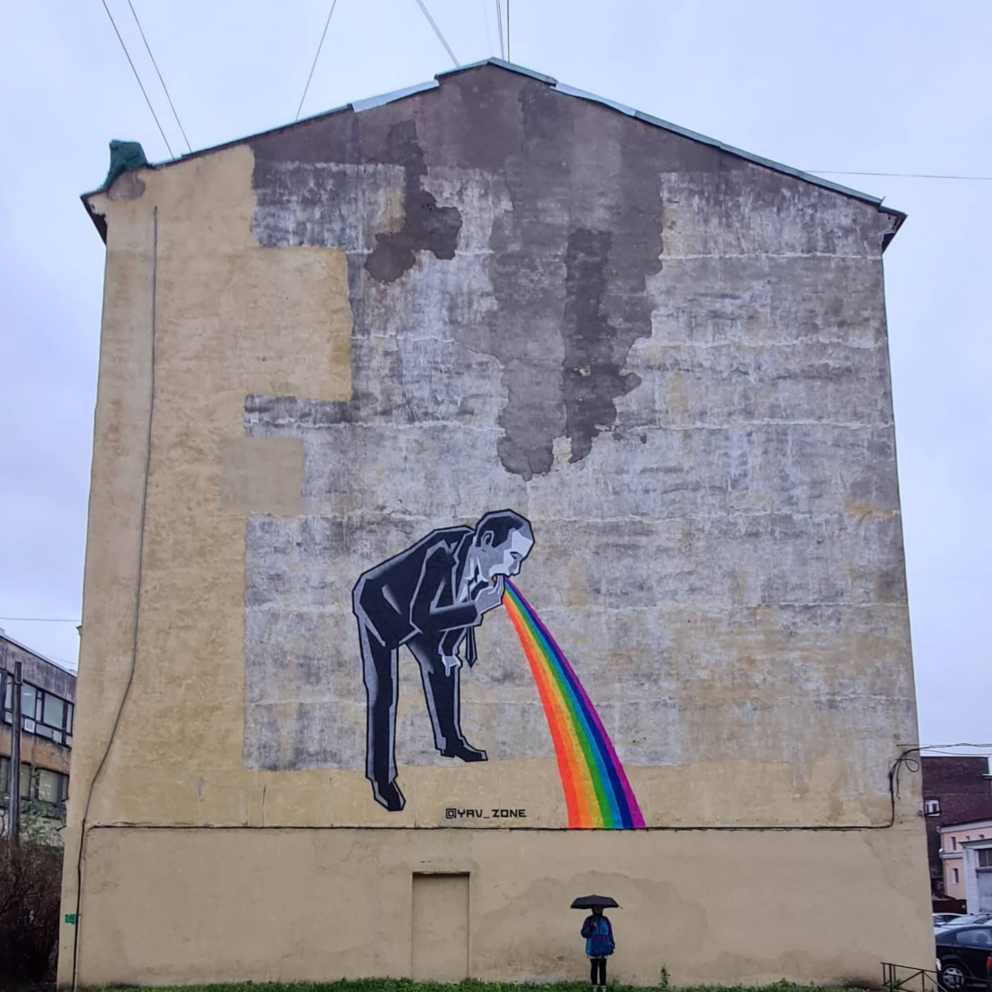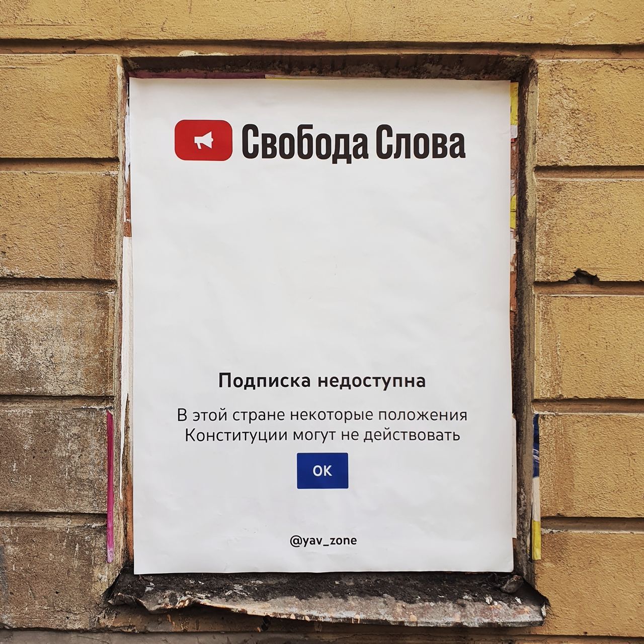 Анастасия: Офлайн никак не живет. Его закрашивают. Среднее время «жизни» объекта — 2-3 часа. Что касается обратной связи, здесь могу опираться на отклики в соцсетях, в информационных пабликах. В 90% случаев отклик положительный. Но, думаю, если работу разместить в издание с другой повесткой, скорее всего, там будет 90% отрицательных откликов. Всё сильно зависит от информационных пузырей: наша аудитория нас понимает.