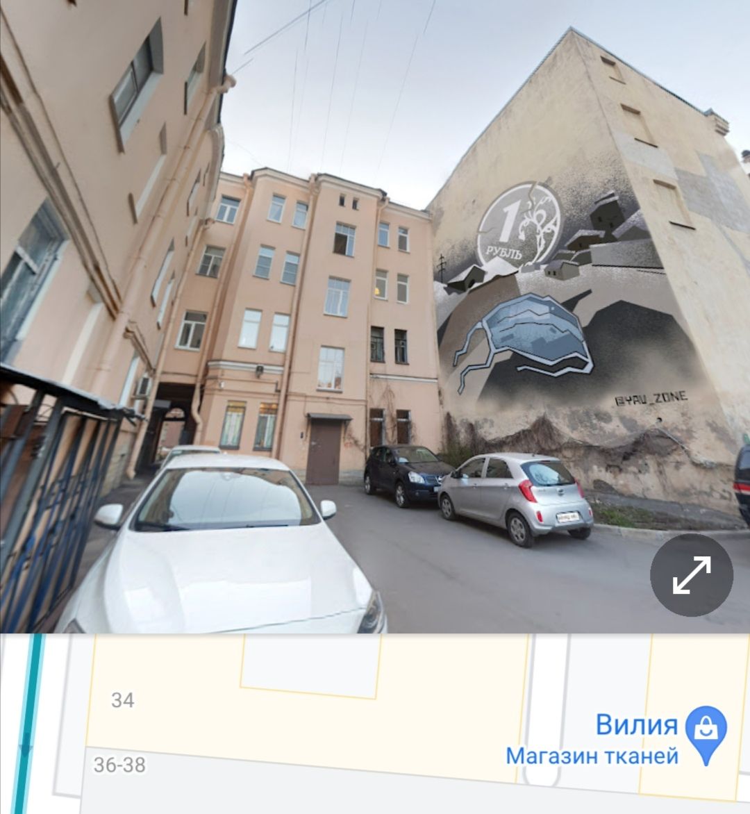 Вторая работа — «Генезис». Это виртуальный стрит-арт. Была пандемия, решили сделать что-то с посылом: сидите дома, гуляйте на гугл-картах. К слову, тогда мы сделали то, чего не могли в реальности из-за отказа власти хоть что-то согласовать, — много работ на фасадах. Они видны на гугл картах в панорамах. Некоторые люди даже пошли искать их, думая, что они есть на самом деле.