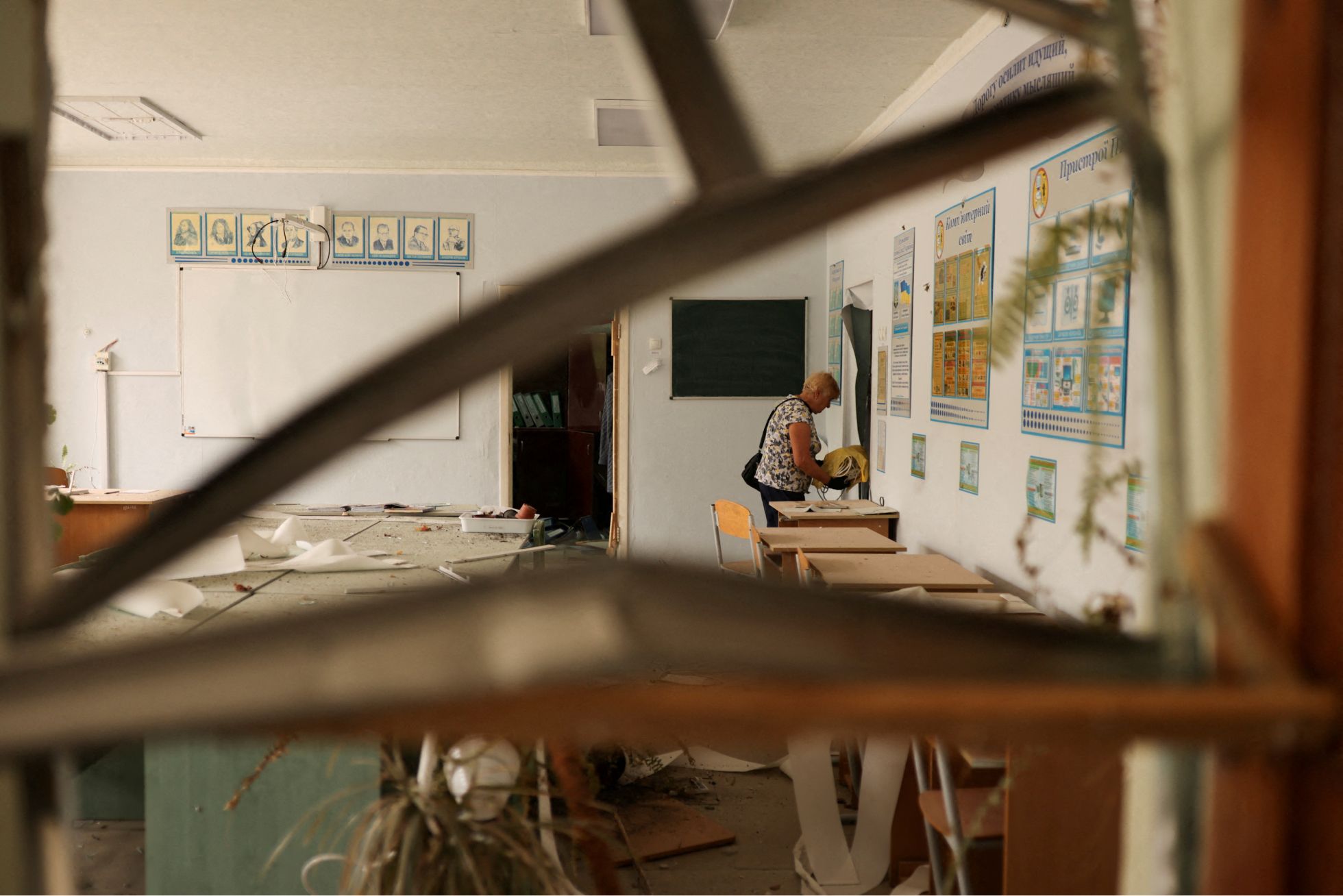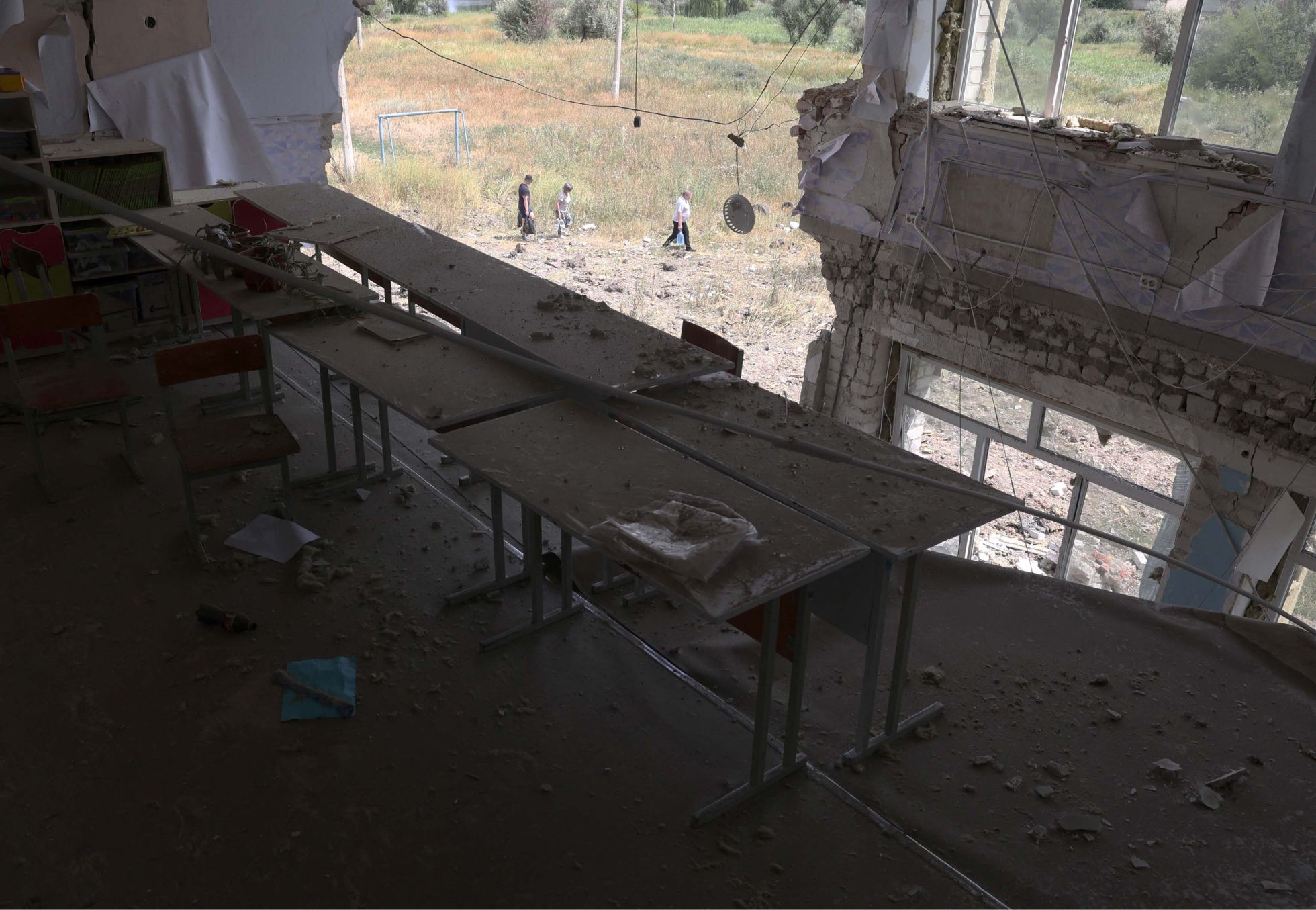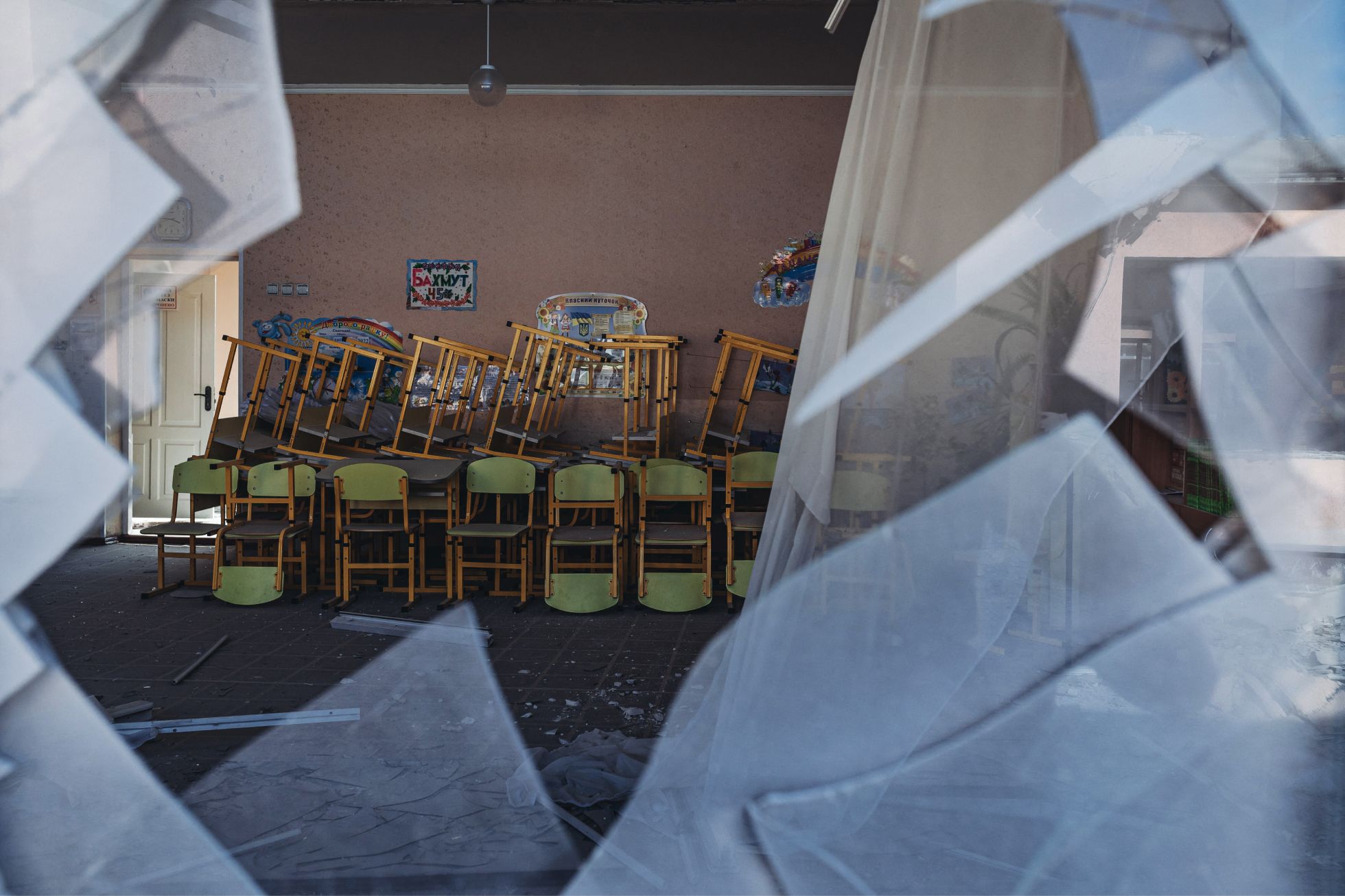 На опубликованных ниже фотографиях показана школа в Константиновке, пострадавшая во время обстрела.
