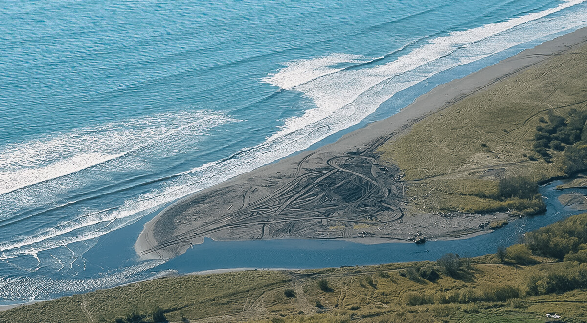 Бочки с остатками ГСМ временно складированы на побережье. Фото: Кроноцкий заповедникБочки с остатками ГСМ вывезены с побережья морским транспортом, видны колеи техники, работавшей на погрузке. Фото: Кроноцкий заповедник