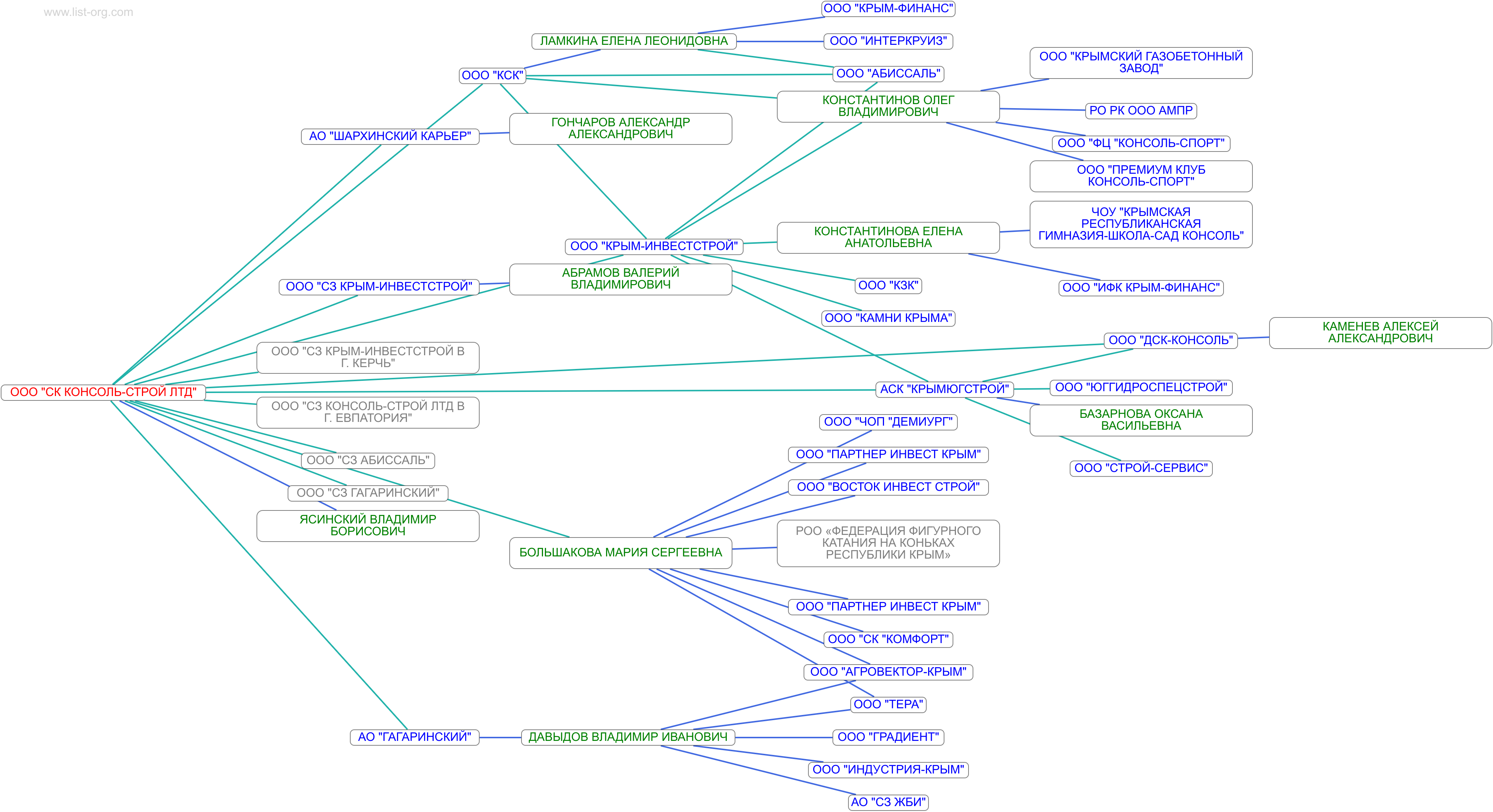 Раньше этой компанией владел и руководил спикер российского парламента Крыма Владимир Константинов, впоследствии бизнес был перерегистрирован на офшорную компанию в Белизе, с 2017 года офшорный собственник продал свою долю крымским компаниям и частным лицам, связанным с Константиновым. В настоящее время собственниками ООО «СК Консоль-Строй ЛТД» являются АО «ШАРХИНСКИЙ КАРЬЕР» (ОКПО:00730885, доля 99.995% – 197,348 млн. руб.) и ООО «СЗ КСК» (ОКПО:00709454, доля 0.005% – 10 тыс. руб.).