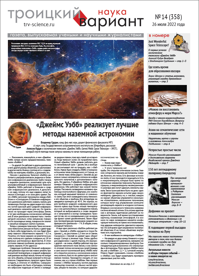 О первых успехах космического телескопа «Джеймс Уэбб» Алексей Кудря беседует с Владимиром Сурдиным — стр. 1–3