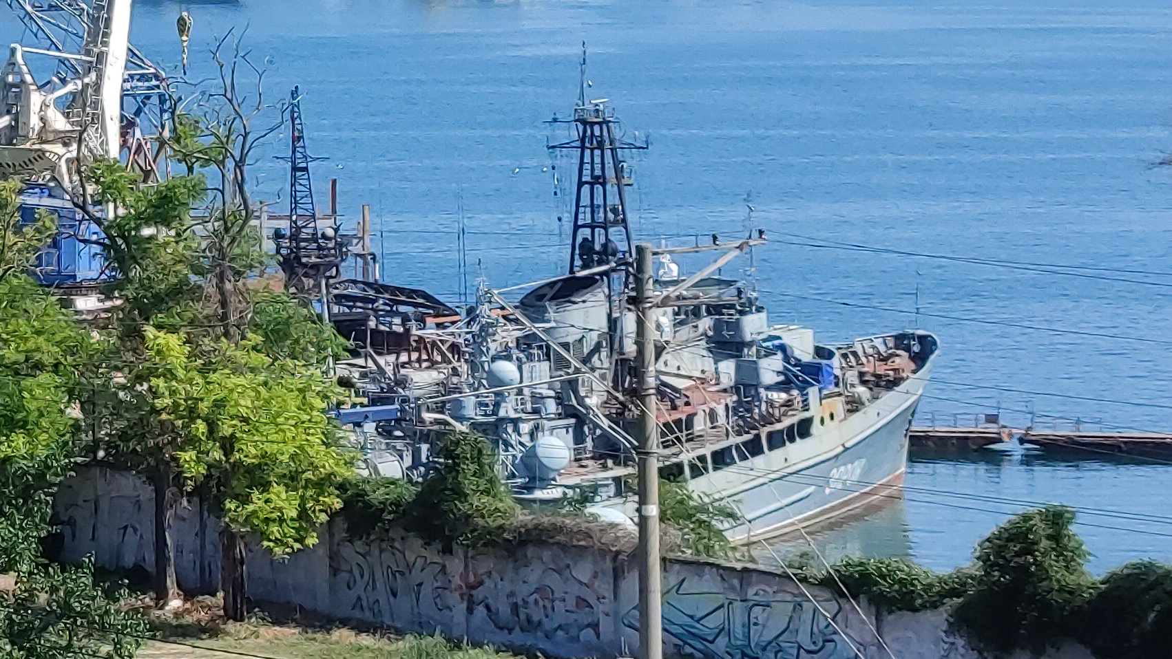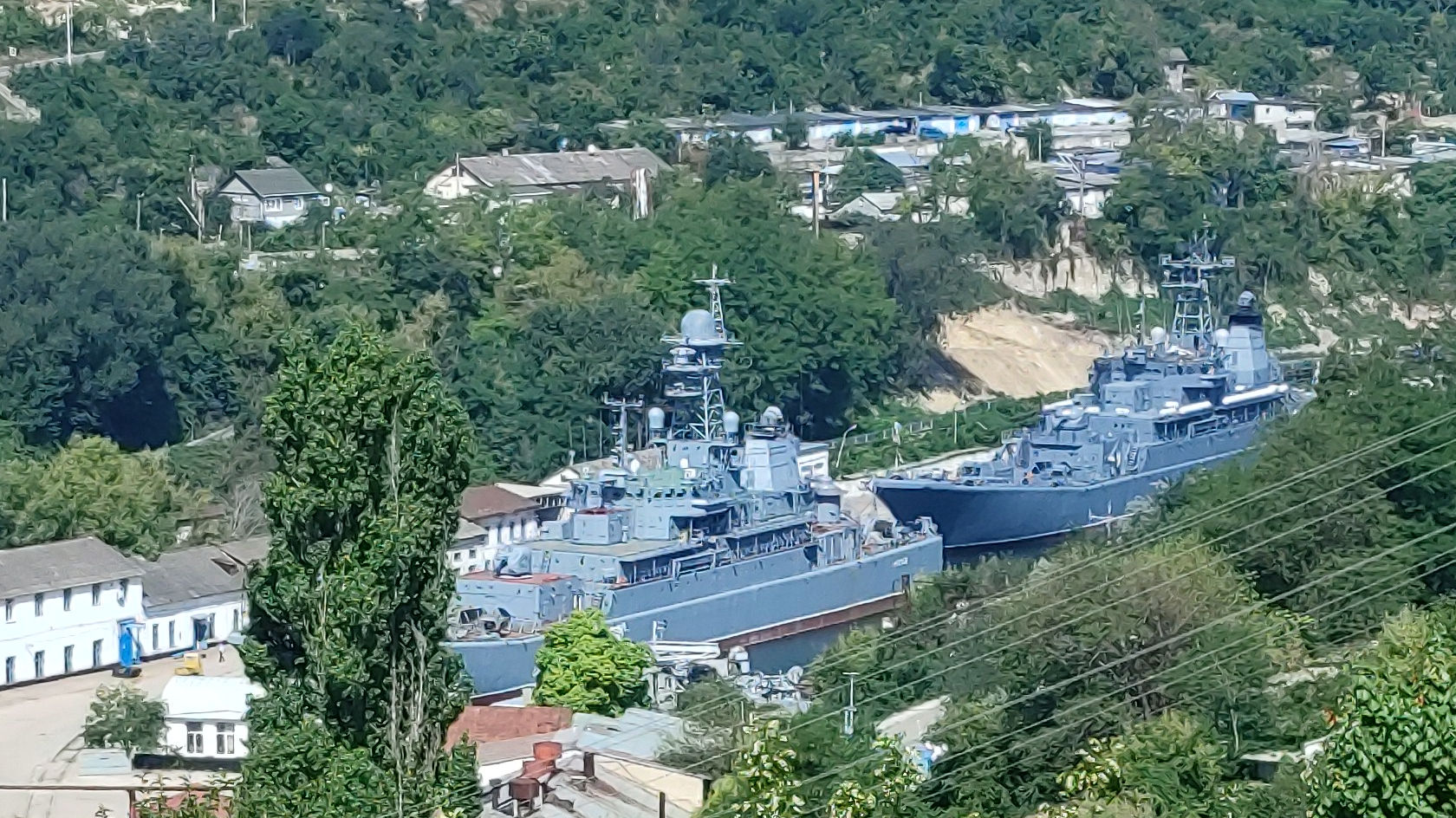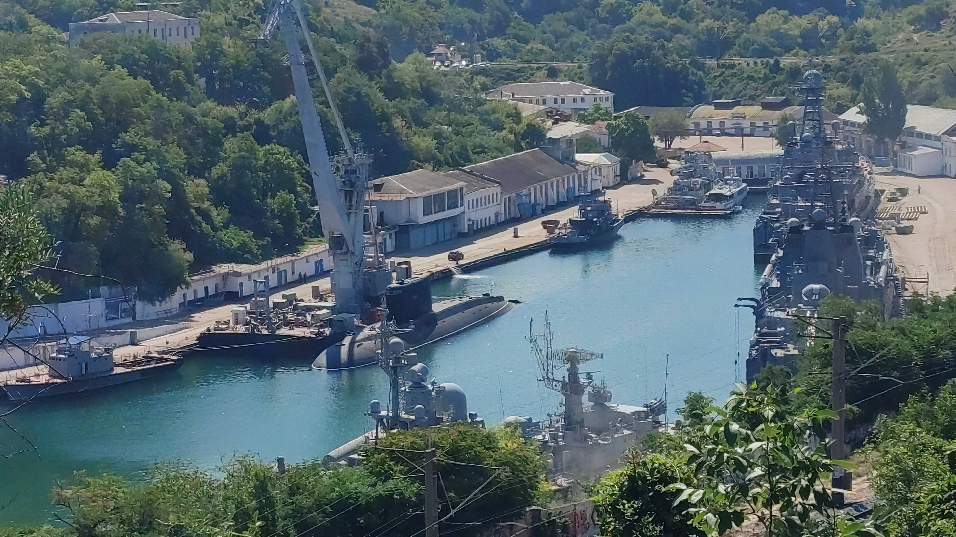 Также в ремонте продолжают находиться два больших десантных корабля. БДК «Азов» (бортовой номер 150) проекта 775М стоит у оконечности бухты, он длительное время проходит ремонт, о чем сообщали Крым.Реалии. На этом же, южном берегу бухты пришвартован большой десантный корабль проекта 775. Он стал на ремонт в начале июля.