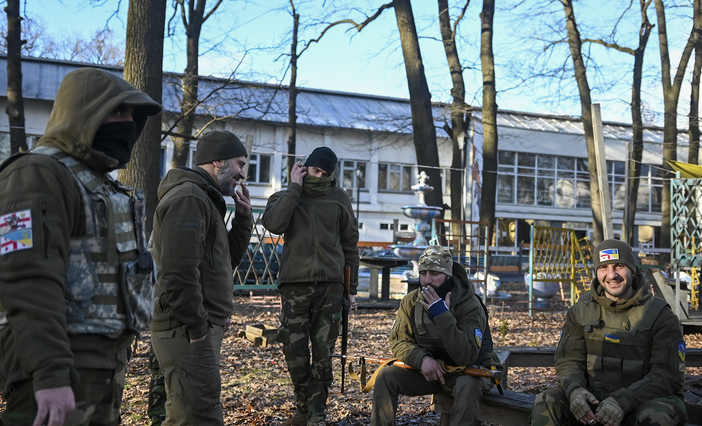 Добровольцы Грузинского национального легиона в Киеве, 18 февраля 2022 года. Фото: Justin Yau /Sipa USA / Reuters