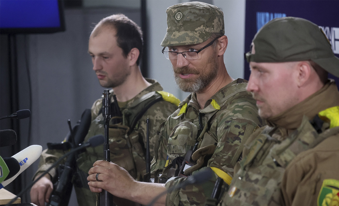 Пресс-конференция Интернационального легиона территориальной обороны Украины, Харьков, 24 июня 2022 года. Фото: Leah Millis / Reuters