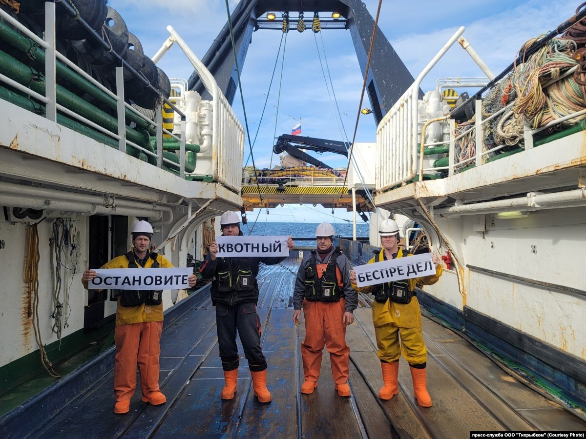 В Магадане рыбаки рыболовецкой компании "Тихрыбком" устроили акцию протеста, адресованную президенту РФ Владимиру Путину. Они просили остановить "развал рыбной отрасли" и не принимать закон об инвестквотах, сообщает издание "Весьма".