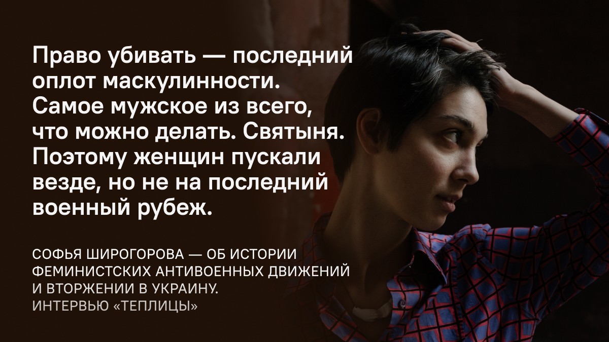 В первые дни после вторжения в Украину активистов и оппозиционеров Россию охватило оцепенение — голоса против войны раздавались, но что делать, кроме как выходить на площади, никто не понимал. Первыми догадались объединяться в сеть сопротивления феминистки, и Феминистское антивоенное сопротивление до сих пор остается важнейшей сетевой структурой в России. Почему так и характерно ли это для женских движений в мировой истории, как шла борьба с концептом «война дело мужское», рассказывает Теплице историк Софья Широгорова.