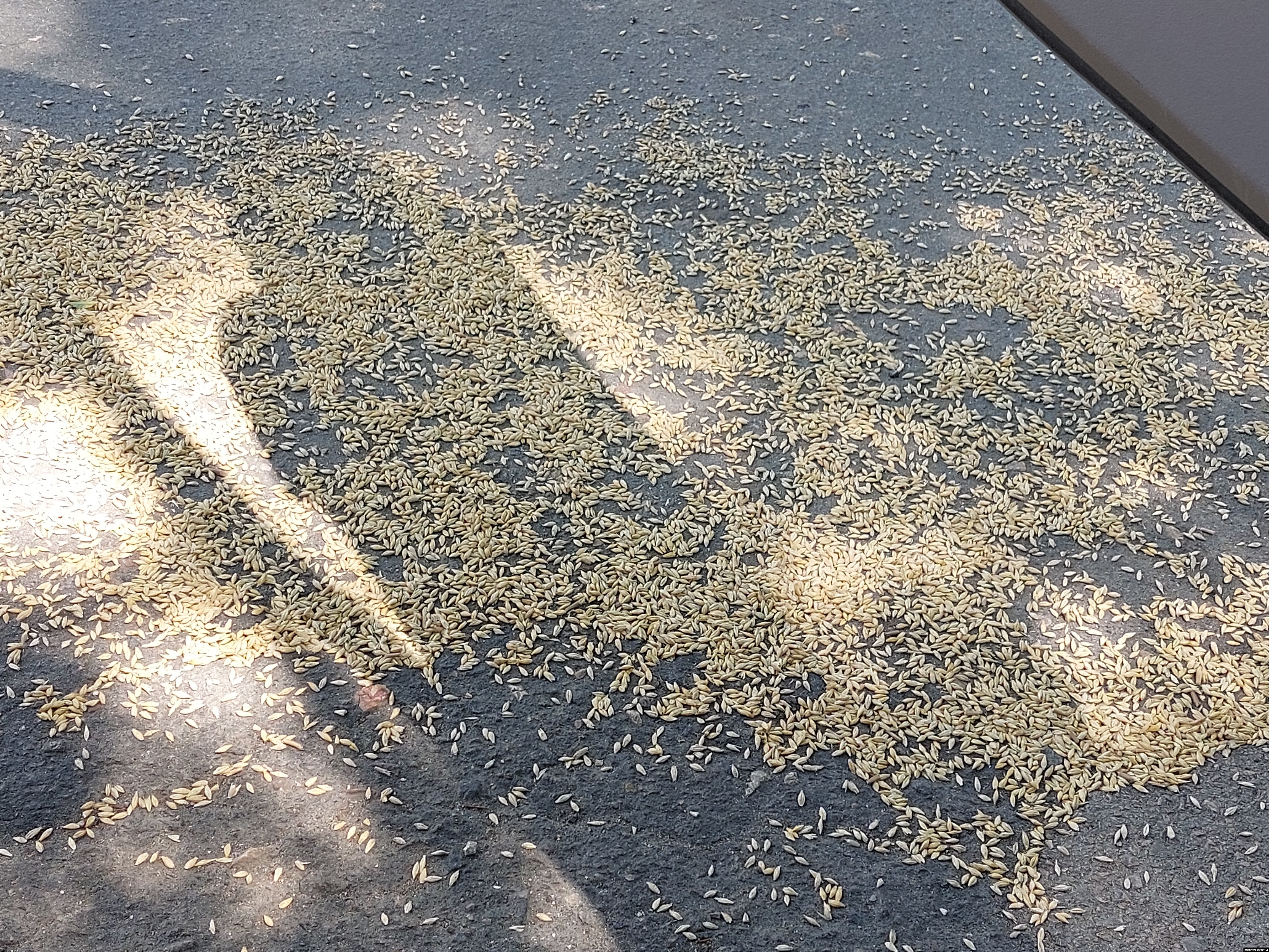По наблюдениям нашего корреспондента, перед воротами порта были остатки рассыпанного зерна.