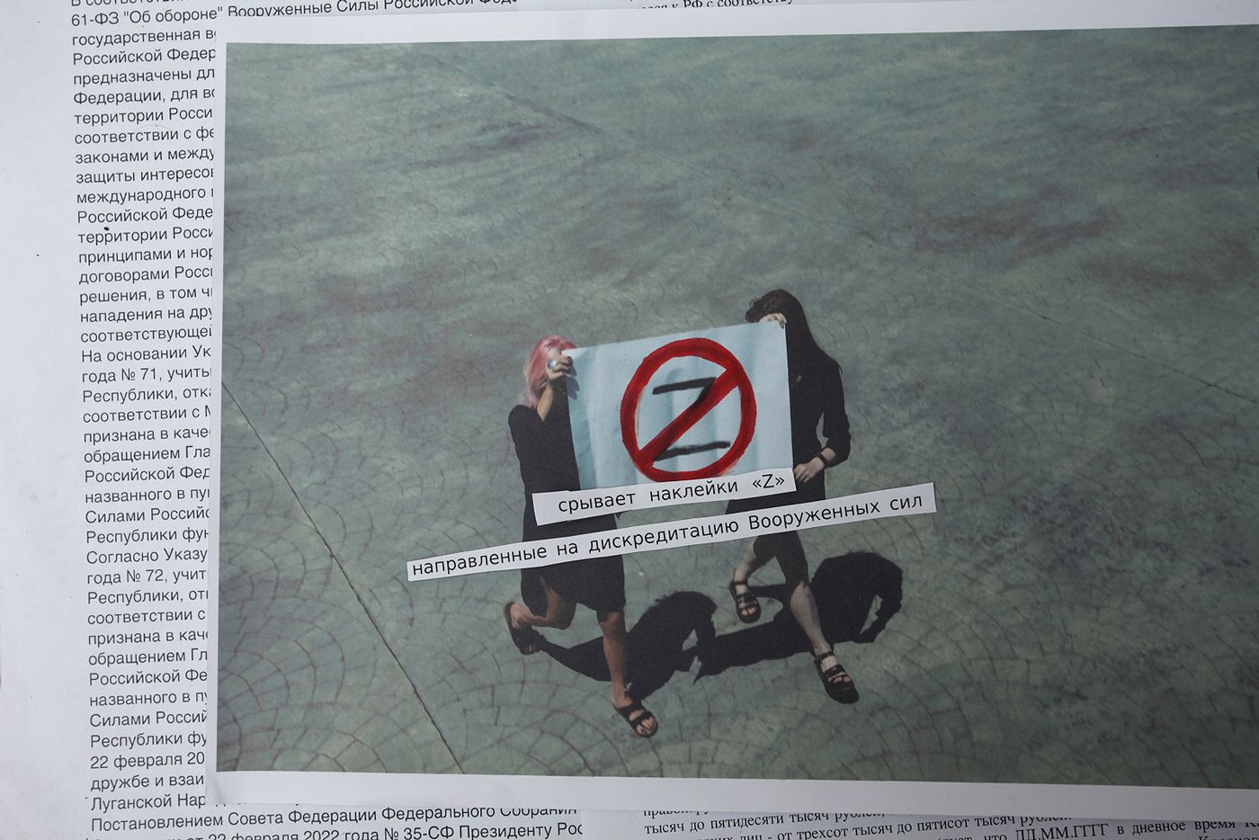 В этом материале «Медуза» рассказывает о примерах антивоенного протеста россиян, признанных виновными по этой статье, — а фотограф Volya переосмысляет их акции и жесты в своих работах.