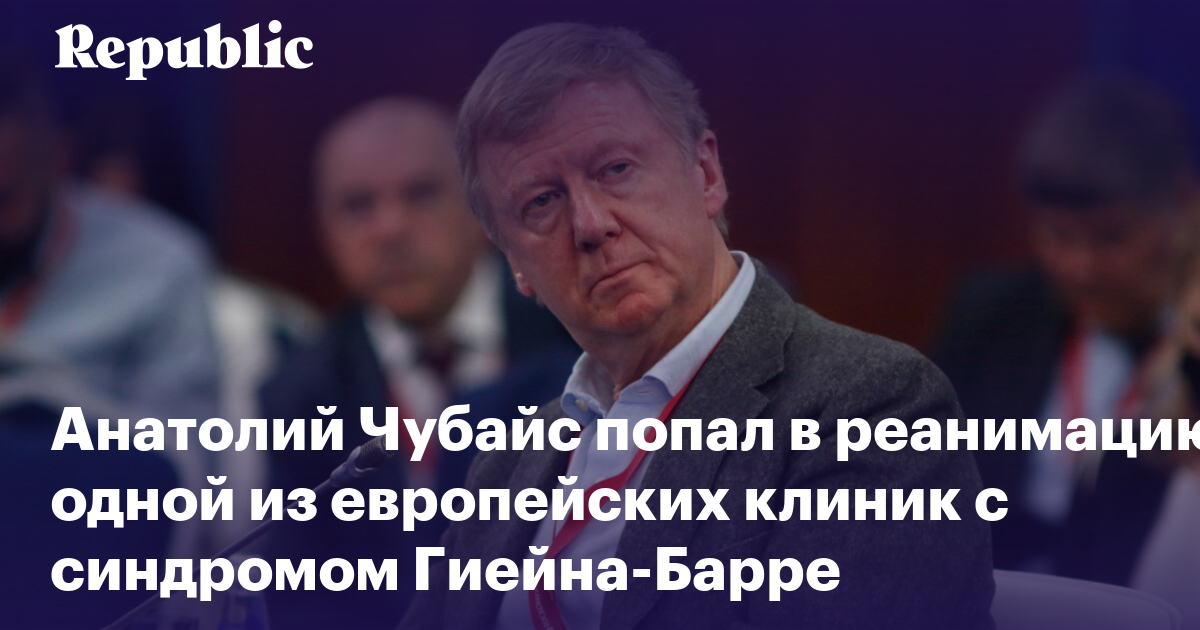 Анатолий Чубайс попал в реанимацию одной из европейских клиник с синдромом Гиейна-Барре — у него отнимаются руки и ноги, сообщила в своем телеграм-канале Ксения Собчак со ссылкой на супруга Чубайса, Авдотью Смирнову.