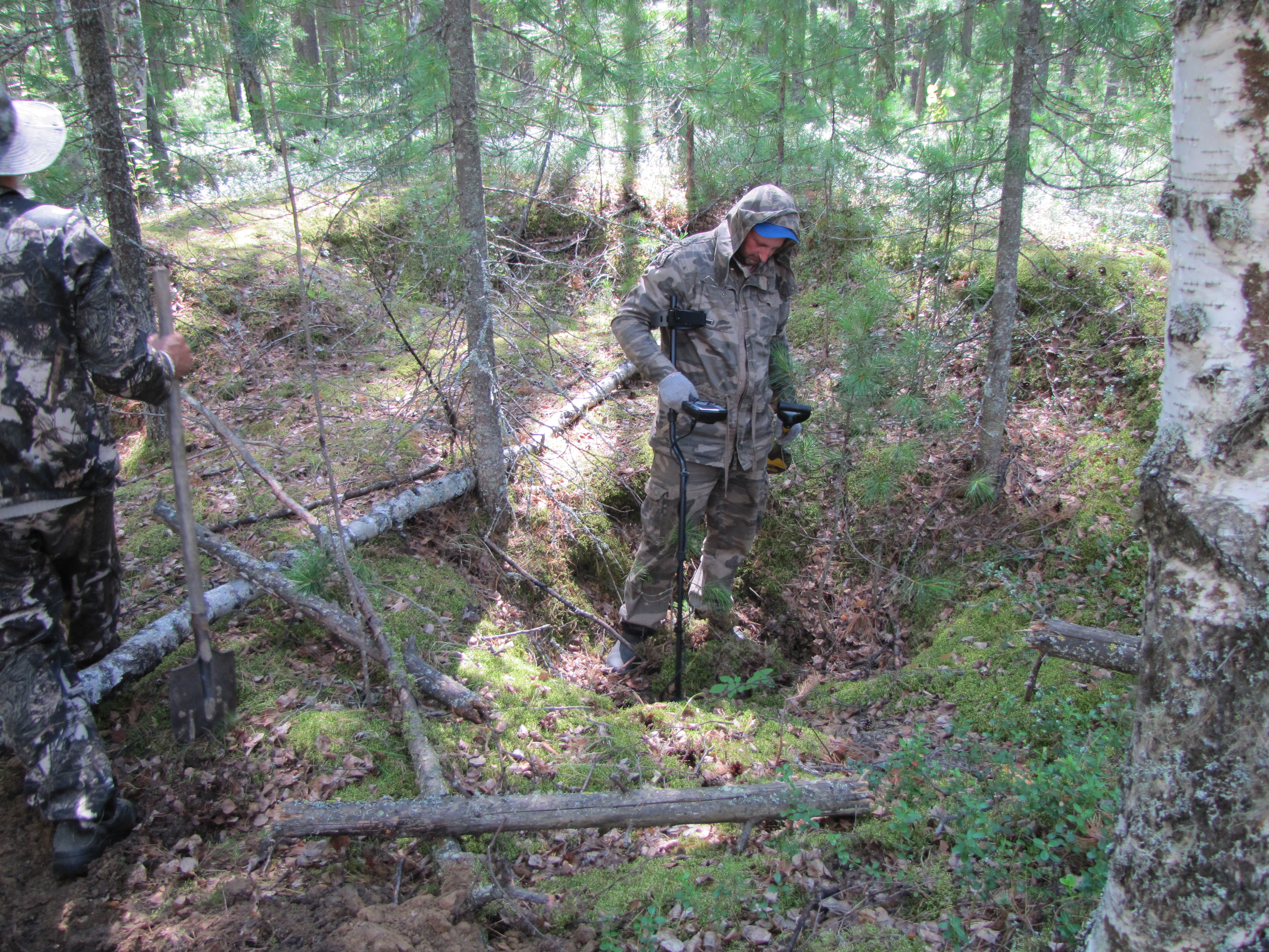Вооружившись металлоискателями, исследователи проходят землянку за землянкой, точнее то, что от них осталось. Деревянные перекрытия давно сгнили, земля по краям обвалилась, но стоит немного здесь покопать – и вот уже обнаружились гирька для весов, печная заслонка, полусгнивший чугунок, прошитая гвоздями резиновая стелька и осколок очень тонкого стекла. Кармакских предполагает, что там, где обнаружилась гирька и осколок, скорее всего, поселенцам выдавали продукты. Стекло в землянках было большой роскошью, на которую мог рассчитывать разве что комендант поселения.