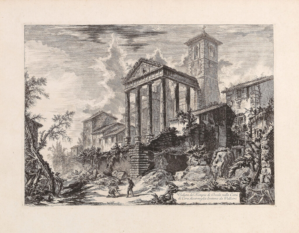 Джованни Баттиста Пиранези. Храм Геркулеса в городе Кори, в десяти милях от Веллетри. Лист 91 из цикла офортов «Виды Рима». Римское издание 1769 года. Состояние I/IV