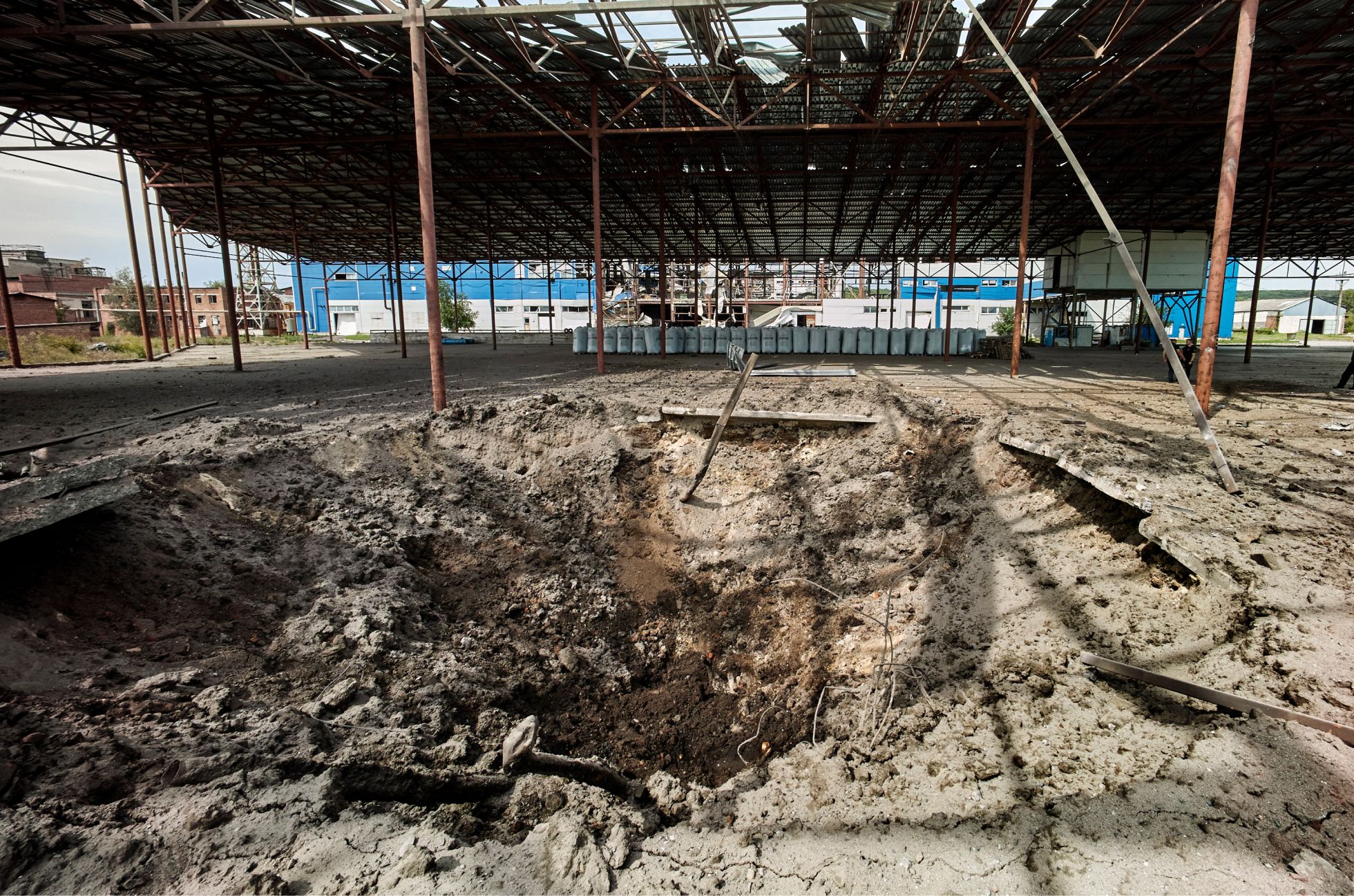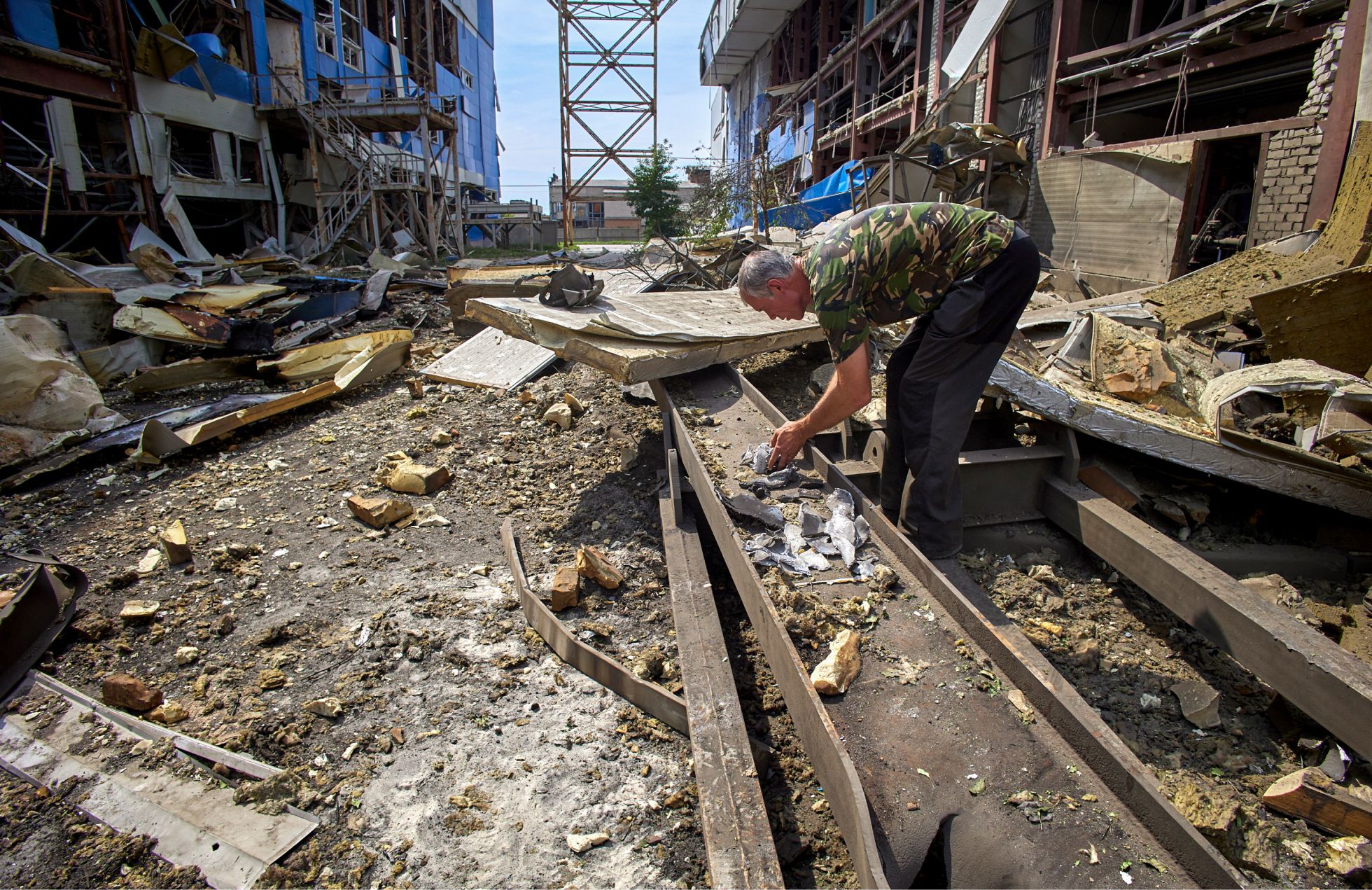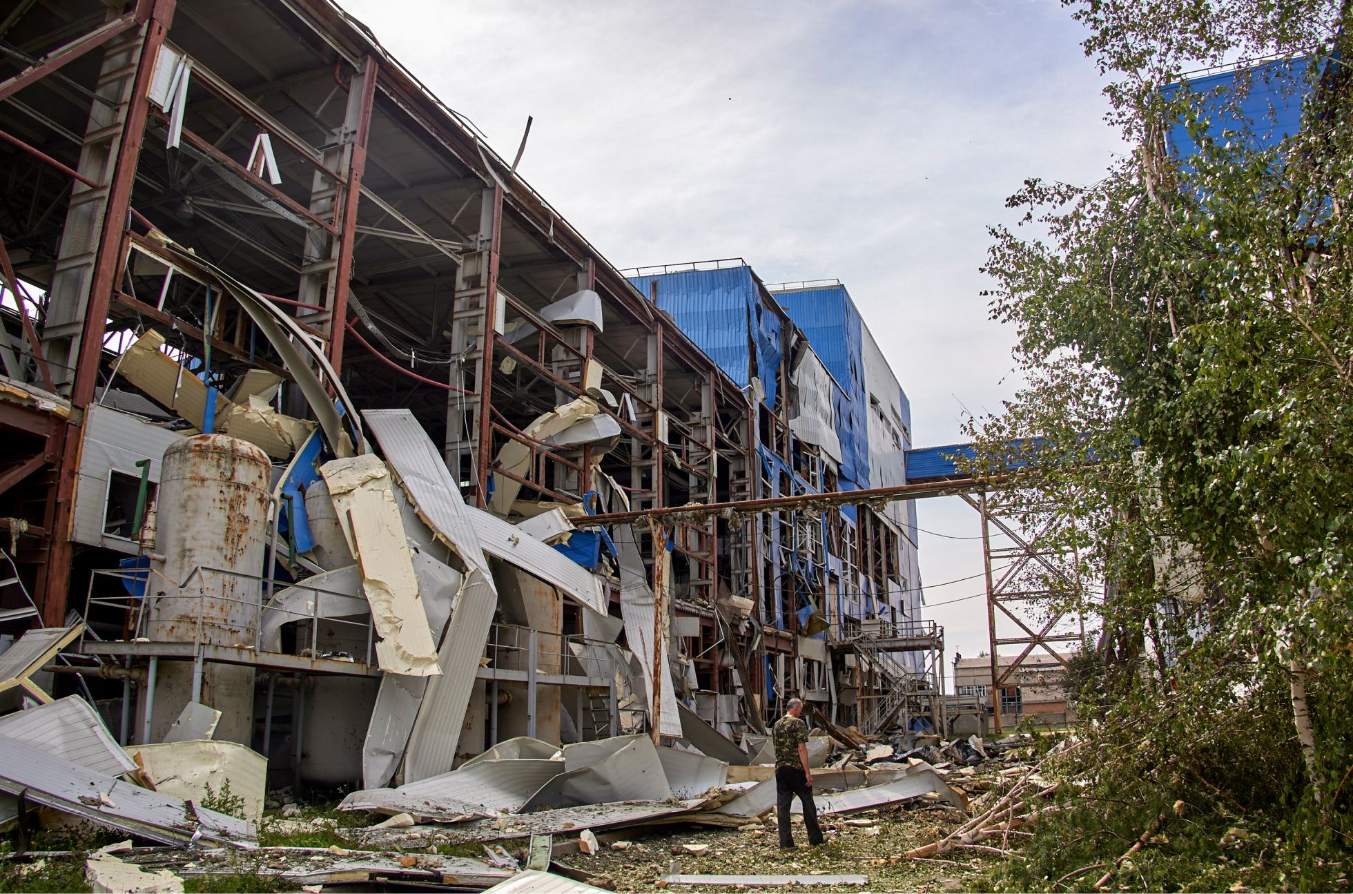 Здание фабрики, разрушенное в результате ракетного обстрела.