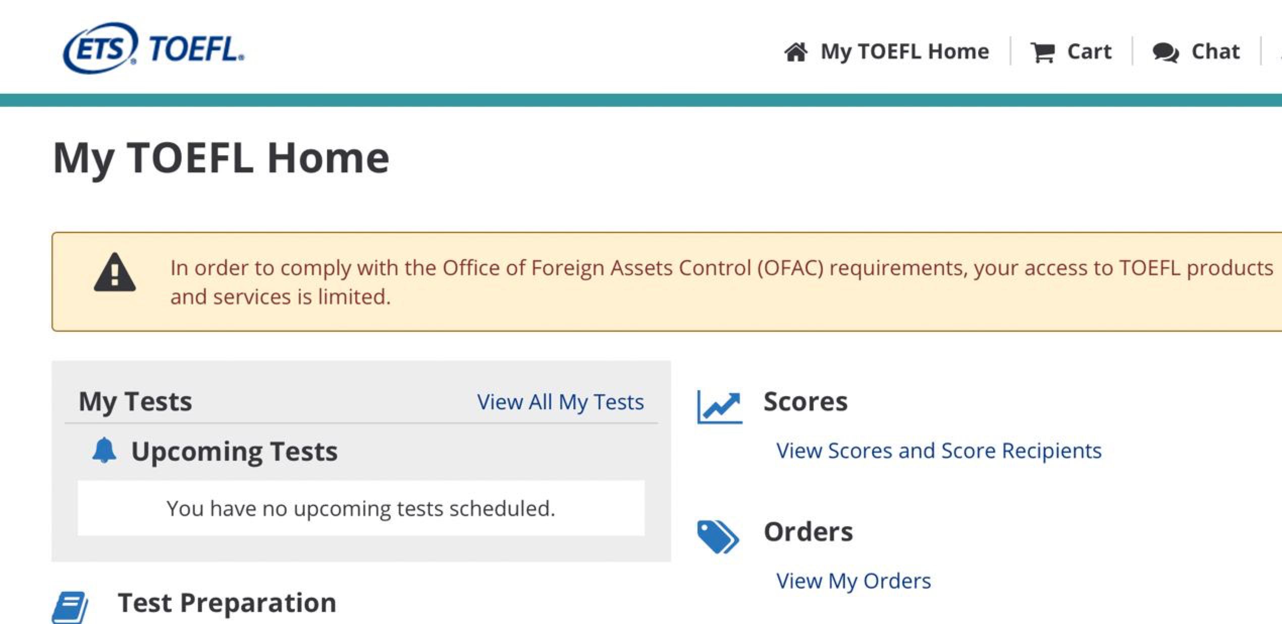 Читательница обнаружила в своем аккаунте на сайте TOEFL предупреждение: «». Собеседница редакции уточнила, что россияне также не могут отправить результаты уже сданного теста в университеты.