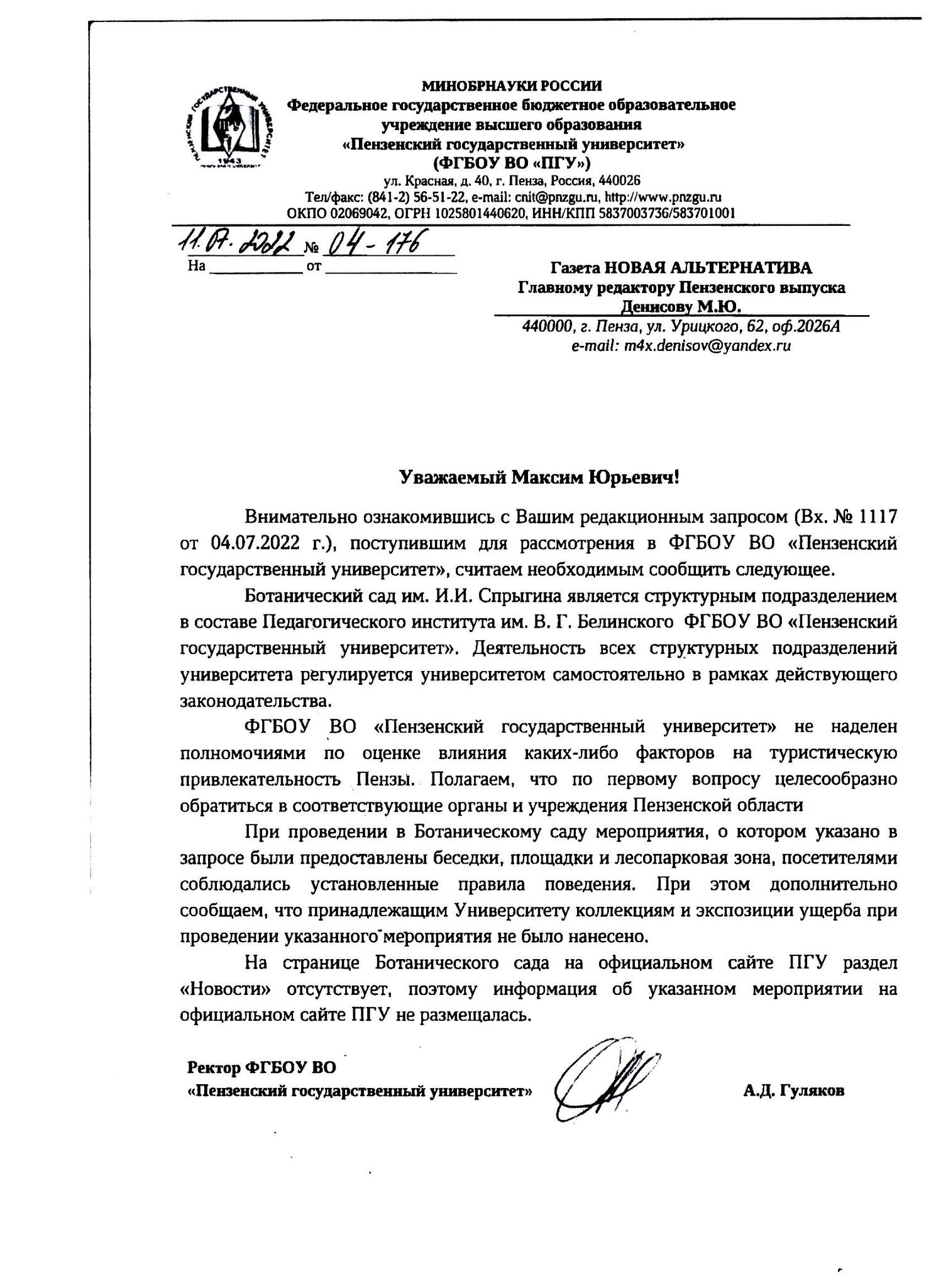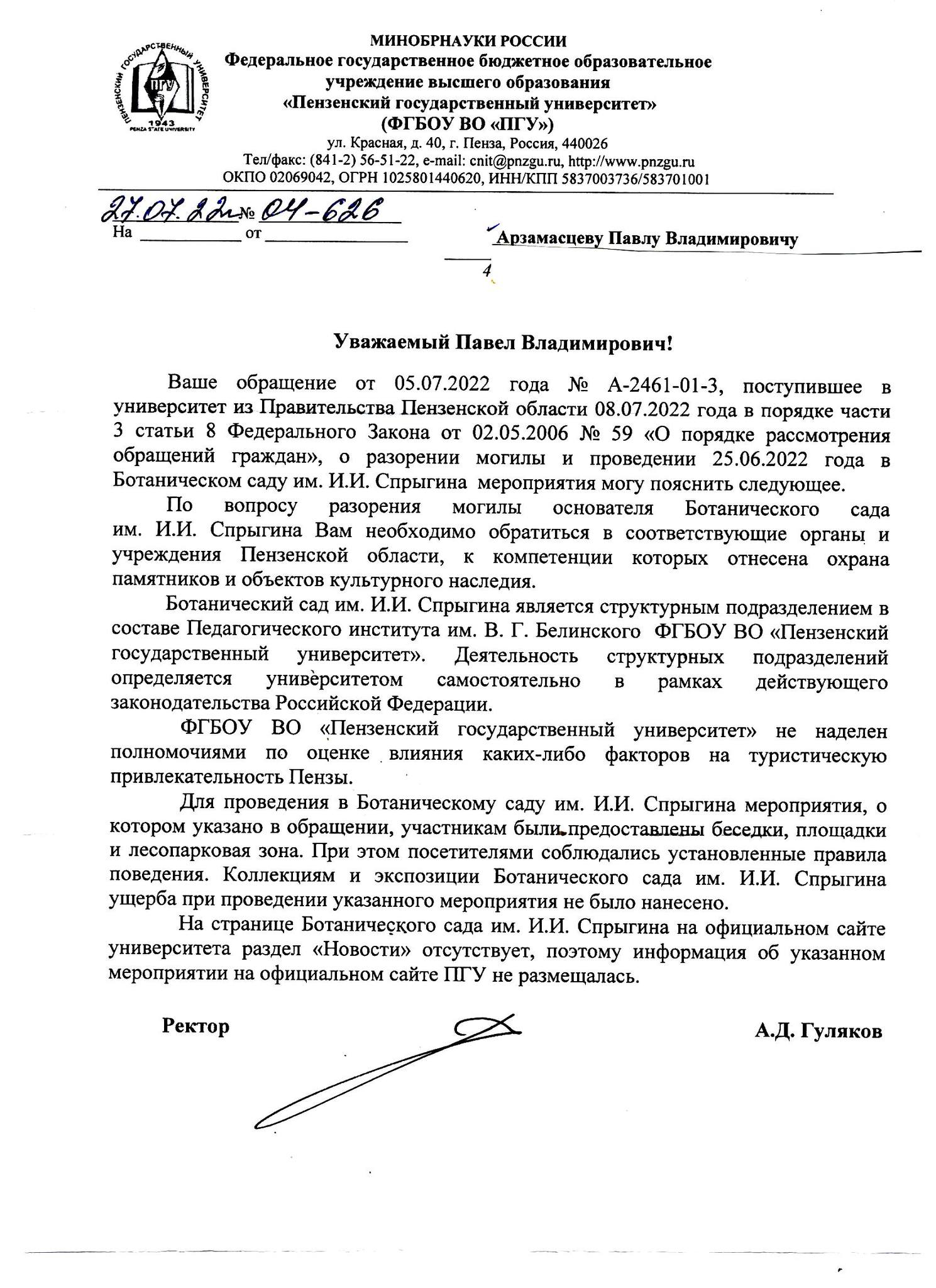Весьма любопытная переписка с ректором ПГУ и по совместительству депутатом Законодательного Собрания Пензенской области Гуляковым А. Д. – обратите внимание на подписи.