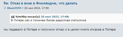 На официальном сайте генконсульства Финляндии в России отмечают, что после отказа в предоставлении визы можно подать апелляционную жалобу. Об отказе в визе сообщают на стандартном бланке: в нем указывают причину отказа, процедуру и сроки подачи апелляции. Подача жалобы стоит 170 €.