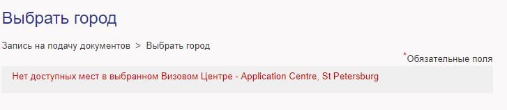 Запись на подачу документов в ближайшее время отсутствует — в визовом центре Петербурга нет мест на август и сентябрь, заявителей на сайте выкидывает на январь. Заняты все слоты даже для подачи документов в зале повышенной комфортности и в прайм-тайм, хотя за эти услуги нужно доплачивать.