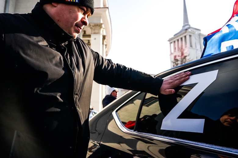 Участник акции в поддержку «спецоперации» российских войск