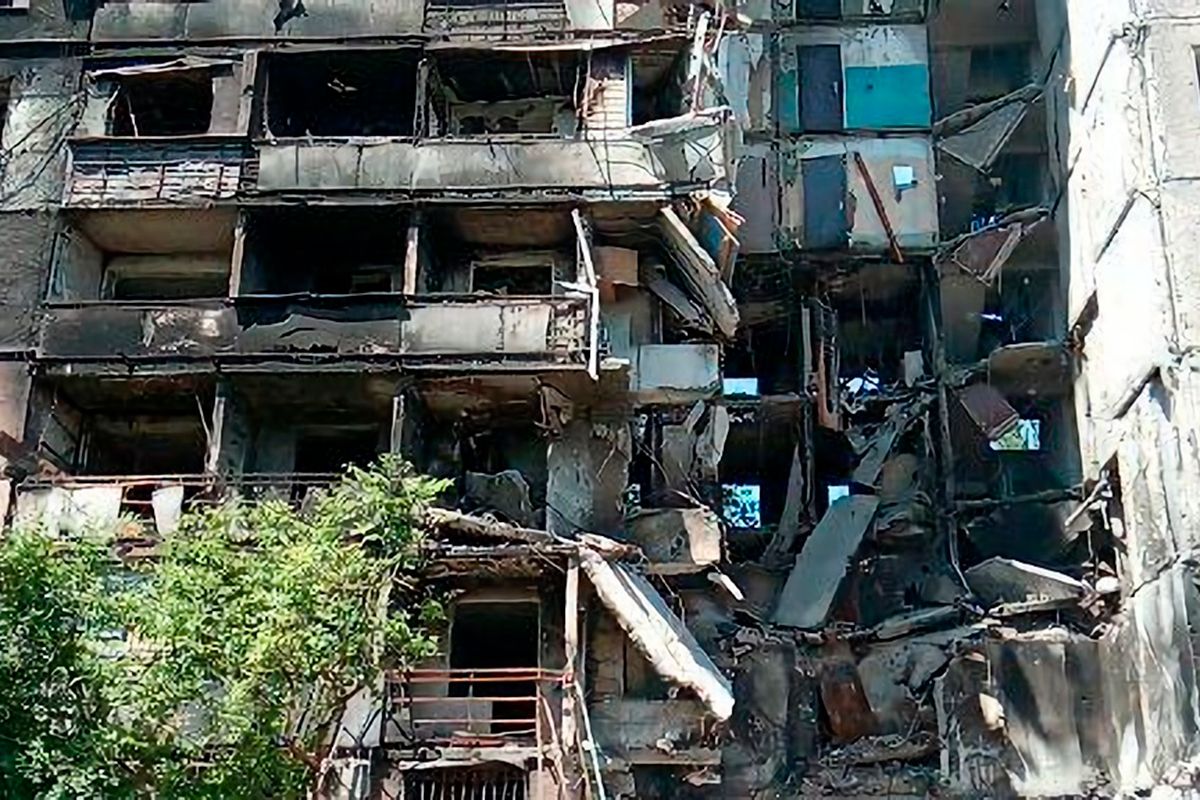 When they reached their daughter’s building, they saw that one of the shells had hit the exact part of the building where Pavel and Olga lived. The fourth and fifth stories were destroyed. In the days that followed, Yelena said, the upper stories collapsed.