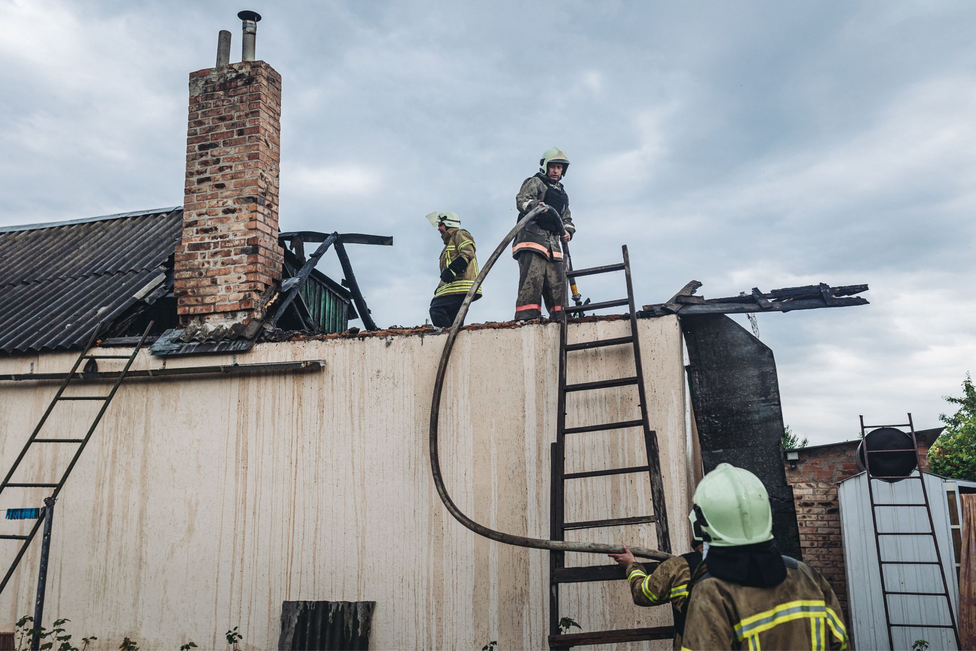 Житель Николаева пытается потушить пожар в соседском доме