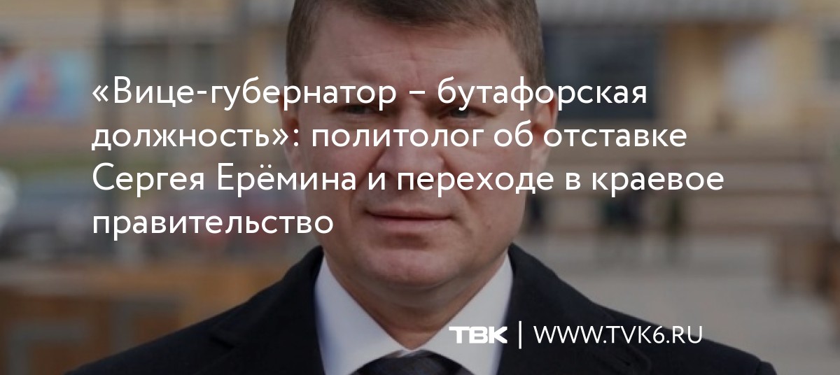 «Вице-губернатор – бутафорская должность»: политолог об отставке Сергея Ерёмина и переходе в краевое правительство