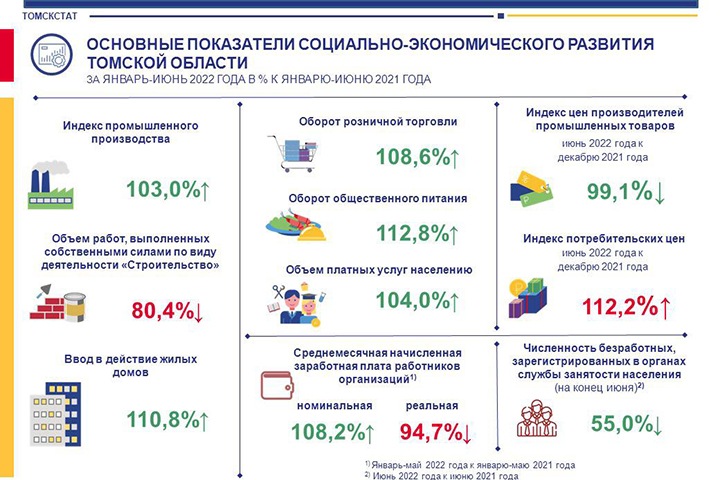 11:10 Реальные доходы населения Томской области рухнули на 5,3% в первой половине 2022 года по сравнению с аналогичным периодом 2021-го, сообщили в Росстате. И это при том, что, по официальным данным, номинальная среднемесячная зарплата выросла на 8,2%.