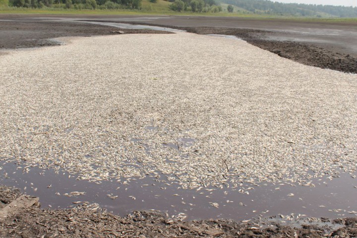 Мор рыбы произошел в Алтайском крае. Из озера была спущена вода. Фото.