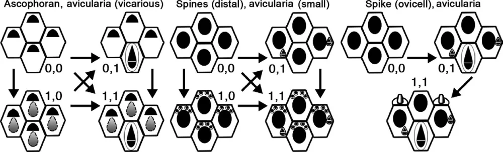 В ряде статей показано, что некоторые подводные виды, образующие колонии, находятся в нетранзитивных отношениях — конкурируют по принципу «камень, ножницы, бумага». Эти отношения известны в биологии достаточно давно (Пермогорский, 2014). В данном случае интересно то, что исследователи не просто обнаруживают и описывают их (да, есть нетранзитивная конкуренция еще и здесь). Авторы продвигаются дальше — они выделяют и представляют «черты» каждого вида (traits of species) как «оружие» и «броню» в попарных взаимодействиях с «оружием» и «броней» у других видов, чего раньше, похоже, не делалось. Приводимые таблицы наборов черт и рисунки очень похожи на данные для логического анализа нетранзитивности доминирования сложных многокомпонентных систем друг над другом (скажем, с помощью модели «нападение — защита — уязвимые места»; научно-популярно: Поддьяков, 2017, рис. «Нетранзитивные „гуляй-башни“»).