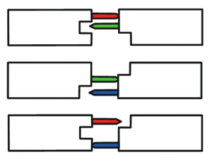 Гуляй-башня с красным маркером ставит метку на гуляй-башне с зеленым маркером, оставаясь для той неуязвимой; гуляй-башня с зеленым маркером ставит метку на гуляй-башне с синим маркером (но не наоборот), а гуляй-башня с синим маркером — на гуляй-башне с красным маркером (но не наоборот).