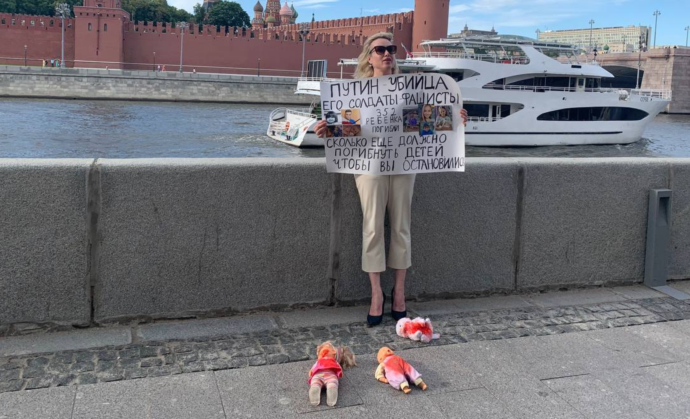 В марте во время вечернего выпуска новостей на Первом канале Овсянникова появилась за спиной ведущей Екатерины Андреевой с плакатом «Остановите войну! Не верьте пропаганде, здесь вам врут». Журналистку сразу задержали, полицейские не пускали к ней адвокатов.