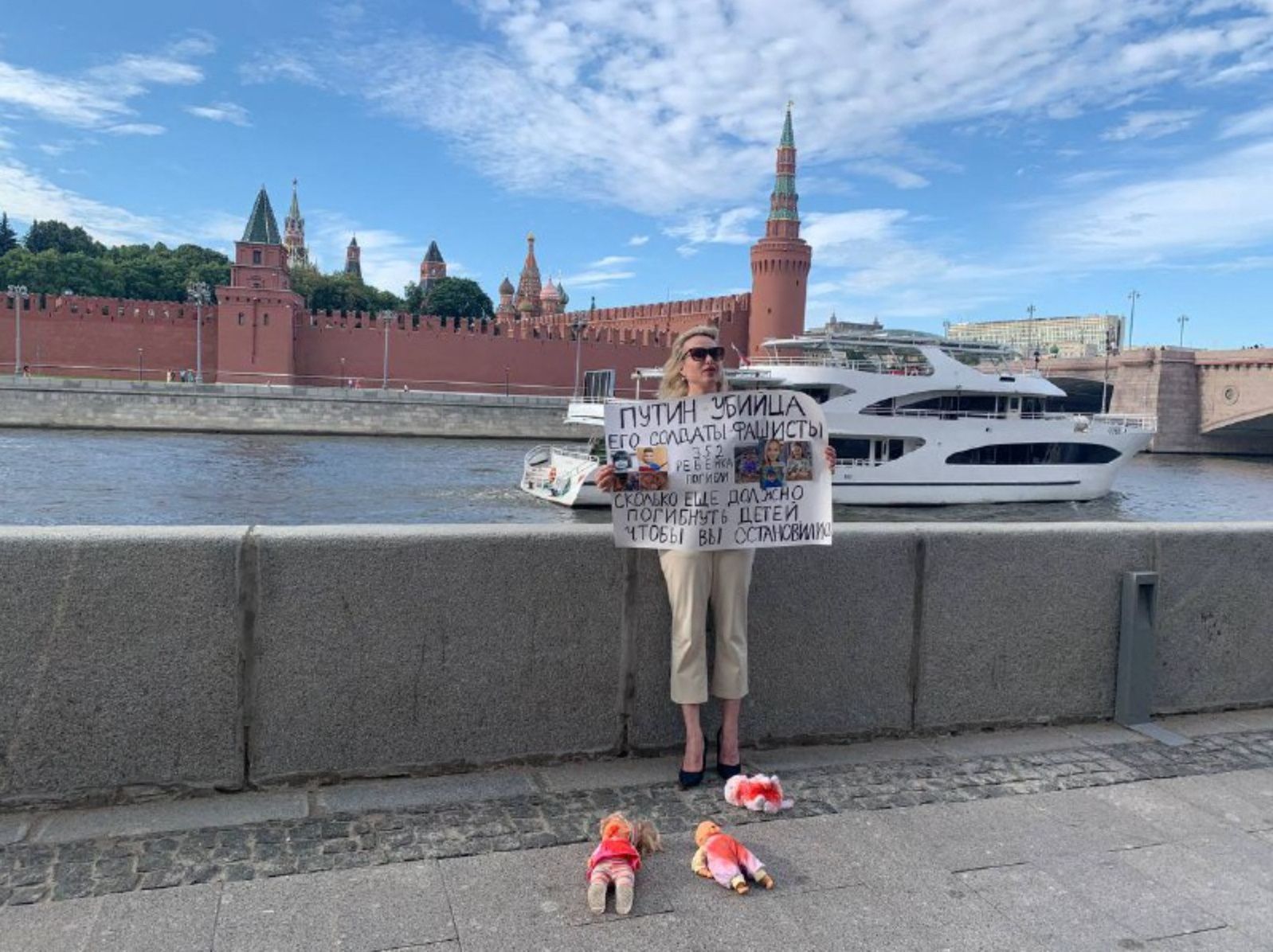 Марину Овсянникову задержали по делу о «фейках» про армию. Месяц назад она вышла на пикет с плакатом «Путин — убийца. Его солдаты — фашисты»