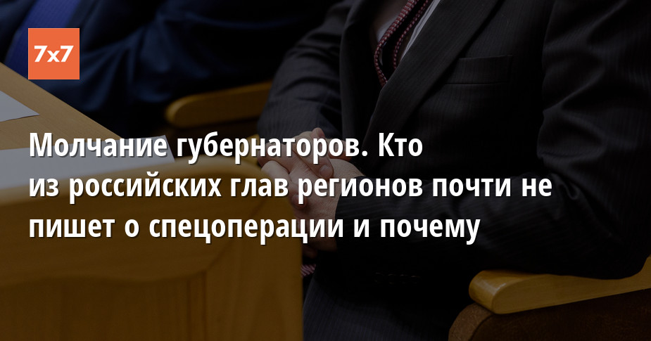 Для этого мы просмотрели страницы в социальных сетях всех глав регионов с 24 февраля по сегодняшний день. Мы искали посты со словами «Донбасс», «спецоперация», «ДНР», «ЛНР», «Украина», «нацизм» и хештегами #СвоихНебросаем, #ZаПрезидента и #ZаРоссию. В том числе корреспондент «7×7» просмотрел высказывания попавших в этот материал губернаторов в СМИ о спецоперации.
